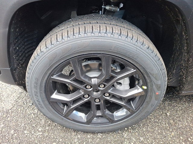 Below is all the standard equipment Blackout Model (Black Painted Roof, Delete Limited Badge, Dual-Pane Panoramic Sunroof, Gloss Black Exterior Accents, and Wheels: 20" x 8.5" Black Painted Aluminum), Quick Order Package 23E, 4WD, 4-Wheel Disc Brakes, 6 Speakers, ABS brakes, Active Noise Control System, Air Conditioning, Alloy wheels, AM/FM radio: SiriusXM with 360L, Anti-whiplash front head restraints, Audio memory, Auto High-beam Headlights, Automatic temperature control, Brake assist, Bumpers: body-color, Capri Leatherette Seats, Compass, Delay-off headlights, Driver door bin, Driver vanity mirror, Dual front impact airbags, Dual front side impact airbags, Electronic Stability Control, Emergency communication system, Four wheel independent suspension, Front anti-roll bar, Front Bucket Seats, Front Center Armrest w/Storage, Front dual zone A/C, Front fog lights, Front License Plate Bracket, Front reading lights, Fully automatic headlights, Garage door transmitter, Heated door mirrors, Heated front seats, Heated rear seats, Heated steering wheel, Illuminated entry, Knee airbag, Low tire pressure warning, Memory seat, Model Year Tracking, Navigation System, Normal Duty Suspension, Occupant sensing airbag, Outside temperature display, Overhead airbag, Overhead console, Panic alarm, ParkView Rear Back-Up Camera, Passenger door bin, Passenger vanity mirror, Power door mirrors, Power driver seat, Power Liftgate, Power passenger seat, Power steering, Power windows, Radio data system, Radio: Uconnect 5 Nav with 10.1" Display, Rear anti-roll bar, Rear reading lights, Rear window defroster, Rear window wiper, Remote keyless entry, Security system, Speed control, Speed-Sensitive Wipers, Split folding rear seat, Spoiler, Steering wheel mounted audio controls, Tachometer, Telescoping steering wheel, Tilt steering wheel, Traction control, Trip computer, Turn signal indicator mirrors, Variably intermittent wipers, Voltmeter, and Wheels: 18" x 8" Polished/Painted Aluminum.