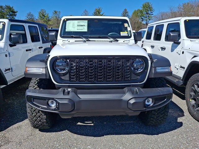 Below is all the standard equipment Convenience Group (2-Door Passive Entry, Front Door Locks, Air Conditioning with Auto Temp Control, Air Filtering, Cluster 7.0" TFT Color Display, Emergency/Assistance Call, Heated Front Seats, Heated Steering Wheel, and Universal Garage Door Opener), Quick Order Package 24W Willys (4-Wheel Drive Swing Gate Decal, 7 and 4 Pin Wiring Harness, Advanced Brake Assist, Automatic Headlamps, Auxiliary Switches, Black Grille with Gloss Black Rings, Class II Receiver Hitch, Conventional Differential Front Axle, Corning Gorilla Glass, Dana M210 Wide HD Tube Front Axle, Dana M220 Wide Rear Axle, Daytime Running Lamps LED Accents, Deep Tint Sunscreen Windows, E-Locker Rear Axle, Enhanced Adaptive Cruise Control, Front LED Fog Lamps, Full Speed Forward Collision Warning Plus, Increased Travel Export Tuned Suspension, Injection Molded Black Rear Bumper, LED Premium Reflector Headlamps, Mold in Color Bumper with Gloss Black, Molded in Color Rubicon Highline Flare, MOPAR All-Weather Floor Mats, Off-Road Plus Mode, Power Heated Mirrors, Premium Wrapped Steering Wheel, Security Alarm, Sun Visors with Illuminated Vanity Mirrors, Wheels: 17" x 7.5" Painted Black, and Willys Hood Decal), Safety Group (Auto High Beam Headlamp Control, Blind Spot and Cross Path Detection, LED Taillamps, and ParkSense Rear Park Assist System), 12.3" Touchscreen Display, 4-Wheel Disc Brakes, 4G LTE Wi-Fi Hot Spot, 8 Speakers, ABS brakes, Air Conditioning, AM/FM radio: SiriusXM with 360L, Apple CarPlay, Apple CarPlay/Android Auto, Aux Battery, Brake assist, Compass, Connectivity - US/Canada, Delay-off headlights, Driver door bin, Driver vanity mirror, Dual front impact airbags, Dual front side impact airbags, Electronic Stability Control, For More Info, Call 800-643-2112, Front anti-roll bar, Front Bucket Seats, Front Center Armrest w/Storage, Front fog lights, Front reading lights, Google Android Auto, Illuminated entry, Integrated Center Stack Radio, Integrated roll-over protection, Low tire pressure warning, Non-Lock Fuel Cap Without Discriminator, Normal Duty Suspension, Occupant sensing airbag, Outside temperature display, Overhead airbag, Panic alarm, ParkView Rear Back-Up Camera, Passenger door bin, Passenger vanity mirror, Power steering, Power Top Quarter Window Storage Bag, Power windows, Radio data system, Radio: Uconnect 5 with 12.3" Display, Rear anti-roll bar, Rear reading lights, Rear Window Defroster, Rear Window Wiper/Washer, Remote keyless entry, Removable Rear Quarter Windows, SiriusXM Radio Service, SiriusXM with 360L, Sky One-Touch Power Top, Speed control, Split folding rear seat, Steering wheel mounted audio controls, Stop-Start Dual Battery System, Tachometer, Telescoping steering wheel, Tilt steering wheel, Traction control, Trip computer, Variably intermittent wipers, and Wheels: 17" x 7.5" Black Steel Styled.