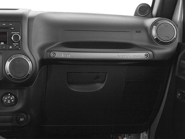 Below is all the standard equipment Connectivity Group (Chrome/Leather Wrapped Shift Knob, Leather Wrapped Steering Wheel, Remote USB Port, Tire Pressure Monitoring Display, Uconnect Voice Command w/Bluetooth®, and Vehicle Information Center), Quick Order Package 24S (17 x 7.5 Aluminum Wheels, Auto-Dimming Mirror w/Reading Lamp, and Deep Tint Sunscreen Windows), 1-Year SiriusXM Radio Service, 16 x 7.0 Luxury Styled Steel Wheels, 3.21 Rear Axle Ratio, 4-Wheel Disc Brakes, 6 Speakers, ABS brakes, Air Conditioning, AM/FM radio, Black 3-Piece Hard Top, Brake assist, CD player, Cloth Bucket Seats, Compass, Driver door bin, Driver vanity mirror, Dual front impact airbags, Electronic Stability Control, Freedom Panel Storage Bag, Front 1-Touch Down Power Windows, Front anti-roll bar, Front Bucket Seats, Front Center Armrest w/Storage, Front fog lights, Integrated roll-over protection, Low tire pressure warning, Normal Duty Suspension, Occupant sensing airbag, Outside temperature display, Passenger door bin, Passenger vanity mirror, Power Heated Mirrors, Power Locks, Power steering, Radio: Uconnect 130 AM/FM/CD/MP3, Rear anti-roll bar, Rear Window Defroster, Rear Window Wiper/Washer, Remote Keyless Entry, Security Alarm, SIRIUS Satellite Radio, Speed control, Split folding rear seat, Steering wheel mounted audio controls, Sunrider Soft Top, Tachometer, Tilt steering wheel, Tinted Rear Quarter & Liftgate Windows, Traction control, Trip computer, and Variably intermittent wipers.