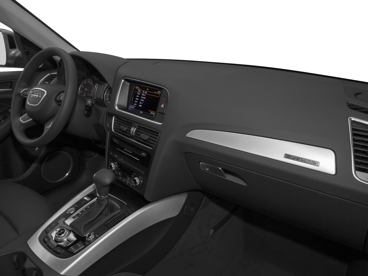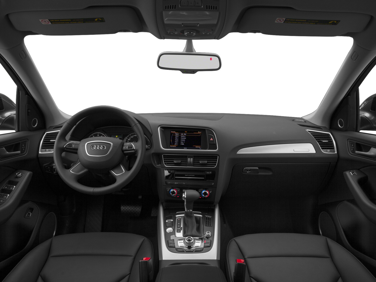 Below is all the standard equipment Leather, 10 Speakers, 2.84 Axle Ratio, 4-Wheel Disc Brakes, ABS brakes, Air Conditioning, Alloy wheels, AM/FM radio, Automatic temperature control, Brake assist, Bumpers: body-color, CD player, Delay-off headlights, Driver door bin, Driver vanity mirror, Dual front impact airbags, Dual front side impact airbags, Electronic Stability Control, Four wheel independent suspension, Front anti-roll bar, Front Bucket Seats, Front Center Armrest, Front dual zone A/C, Front fog lights, Front reading lights, Garage door transmitter: HomeLink, Genuine wood console insert, Genuine wood dashboard insert, Genuine wood door panel insert, Heated door mirrors, High intensity discharge headlights: Xenon plus, Illuminated entry, Leather Seating Surfaces, Leather Shift Knob, Leather steering wheel, Low tire pressure warning, Occupant sensing airbag, Outside temperature display, Overhead airbag, Overhead console, Panic alarm, Passenger door bin, Passenger vanity mirror, Power door mirrors, Power driver seat, Power Front Bucket Seats, Power Liftgate, Power moonroof, Power passenger seat, Power steering, Power windows, Radio data system, Radio: MMI Plus System w/6.5 Color Screen, Rain sensing wipers, Rear air conditioning, Rear anti-roll bar, Rear fog lights, Rear reading lights, Rear seat center armrest, Rear window defroster, Rear window wiper, Remote keyless entry, Roof rack, Security system, Speed control, Speed-sensing steering, Speed-Sensitive Wipers, Split folding rear seat, Spoiler, Steering wheel mounted audio controls, Tachometer, Telescoping steering wheel, Tilt steering wheel, Traction control, Trip computer, Turn signal indicator mirrors, Variably intermittent wipers, and Wheels: 8.0 x 18 5-V-Spoke-Design. Awards:
