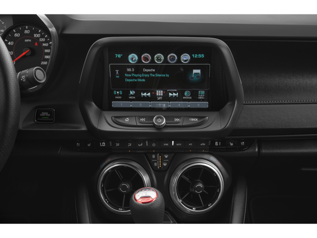 Below is all the standard equipment Preferred Equipment Group 1SS, 2 USB Ports & Auxiliary Input Jack, 2.77 Rear Axle Ratio, 4-Wheel Disc Brakes, 6 Speakers, 6-Speaker Audio System Feature, 6-Way Power Front Passenger Seat Adjuster, 8-Way Power Driver Seat Adjuster, ABS brakes, Air Conditioning, Alloy wheels, AM/FM radio: SiriusXM, Apple CarPlay/Android Auto, Automatic temperature control, Brake assist, Bumpers: body-color, Cloth Seat Trim, Compass, Delay-off headlights, Driver door bin, Driver vanity mirror, Dual front impact airbags, Dual front side impact airbags, Electronic Stability Control, Emergency communication system: OnStar Guidance, Exterior Parking Camera Rear, Four wheel independent suspension, Front anti-roll bar, Front Bucket Seats, Front Center Armrest, Front fog lights, Front License Plate Bracket, Front reading lights, Front Sport Bucket Seats, Fully automatic headlights, High-Intensity Discharge Headlights, Illuminated entry, Knee airbag, Leather Shift Knob, Low tire pressure warning, Occupant sensing airbag, Overhead airbag, Paddle-Shift Manual Controls, Panic alarm, Passenger door bin, Passenger vanity mirror, Power door mirrors, Power driver seat, Power passenger seat, Power steering, Power windows, Premium audio system: Chevrolet MyLink, Radio data system, Radio: Chevrolet MyLink Audio System, Rear anti-roll bar, Rear window defroster, Remote keyless entry, Remote Vehicle Starter System, Security system, SiriusXM Satellite Radio, Speed control, Speed-sensing steering, Spoiler, Steering wheel mounted audio controls, Tachometer, Telescoping steering wheel, Tilt steering wheel, Traction control, Trip computer, Variably intermittent wipers, Voltmeter, and Wheels: 20 x 8.5 Fr & 20 x 9.5 Rr 5-Spoke Alum. Awards: