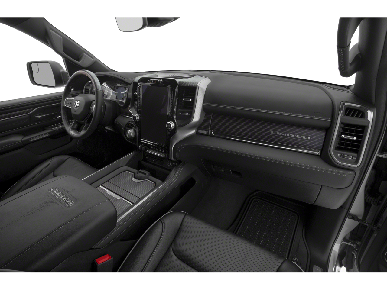 Below is all the standard equipment Bed Utility Group (4 Adjustable Cargo Tie-Down Hooks and Pick-Up Box Lighting), Limited Level 1 Equipment Group (Adaptive Cruise Control w/Stop & Go, Advanced Brake Assist, Full Speed Forward Collision Warning Plus, harman/kardon 19 Speaker Premium Sound, Lane Keep Assist, Parallel & Perp Park Assist w/Stop, and Ventilated Rear Seats), Quick Order Package 25M Limited, Wheels: 22 x 9 Polish/Painted w/Inserts, 1-Yr SiriusXM Guardian Trial, 10 Speakers, 12 Touchscreen Display, 3.21 Rear Axle Ratio, 4-Wheel Disc Brakes, 48V Belt Starter Generator, ABS brakes, Adjustable pedals, Air Conditioning, Alloy wheels, AM/FM radio: SiriusXM with 360L, Apple CarPlay, Apple CarPlay/Android Auto, Audio memory, Auto High-beam Headlights, Auto-dimming door mirrors, Auto-dimming Rear-View mirror, Auto-leveling suspension, Automatic temperature control, Bodyside moldings, Brake assist, Bumpers: chrome, Compass, Delay-off headlights, Disassociated Touchscreen Display, Dome Dual LED Reading Lamp, Driver door bin, Driver vanity mirror, Dual front impact airbags, Dual front side impact airbags, Dual-Pane Panoramic Sunroof, Electronic Stability Control, Emergency communication system: SiriusXM Guardian, Front anti-roll bar, Front Bucket Seats, Front Center Armrest w/Storage, Front dual zone A/C, Front fog lights, Front reading lights, Front wheel independent suspension, Fully automatic headlights, Garage door transmitter, Genuine wood console insert, Genuine wood dashboard insert, Genuine wood door panel insert, Google Android Auto, GPS Antenna Input, GPS Navigation, HD Radio, Heated door mirrors, Heated front seats, Heated rear seats, Heated steering wheel, Illuminated entry, Integrated Center Stack Radio, Leather steering wheel, LED Dome/Reading Lamp, Low tire pressure warning, Memory seat, Navigation System, Occupant sensing airbag, Outside temperature display, Overhead airbag, Overhead console, Panic alarm, ParkView Rear Back-Up Camera, Passenger door bin, Passenger vanity mirror, Pedal memory, Power door mirrors, Power driver seat, Power passenger seat, Power steering, Power windows, Premium Leather Trimmed Bucket Seats, Radio data system, Radio: Uconnect 12 w/Navigation, Rain sensing wipers, RamBox Cargo Management System, Rear anti-roll bar, Rear seat center armrest, Rear step bumper, Rear window defroster, Remote CD player, Remote keyless entry, Security system, SiriusXM Satellite Radio, SiriusXM Traffic Plus, SiriusXM Travel Link, SiriusXM w/360L, Speed control, Split folding rear seat, Steering wheel mounted audio controls, Tachometer, Telescoping steering wheel, Tilt steering wheel, Traction control, Trip computer, Turn signal indicator mirrors, USB Host Flip, Variably intermittent wipers, Ventilated front seats, and Voltmeter. Awards: