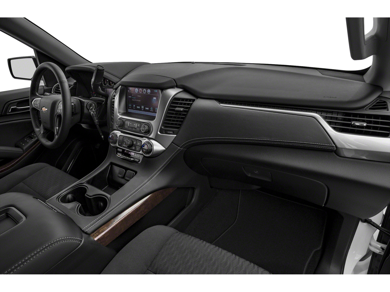 Below is all the standard equipment Enhanced Driver Alert Package (Y86) (Automatic Emergency Braking, Forward Collision Alert, IntelliBeam Headlamps, and Lane Keep Assist w/Lane Departure Warning), Luxury Package (2nd Row Pwr Release 60/40 Split Folding Bench Seat, 3rd Row 60/40 Power Fold Split-Bench, Extended-Range Remote Keyless Entry, Fog Lamps, Front & Rear Park Assist, Hands Free Power Liftgate, Heated 2nd Row Outboard Seats, Heated Leather Wrapped Steering Wheel, Lane Change Alert w/Side Blind Zone Alert, Memory Settings, Passive Entry System, Power Tilt & Telescopic Steering Column w/Memory, Power-Folding Heated Outside Mirrors, Push Button Keyless Start, and Rear Cross Traffic Alert), Preferred Equipment Group 1LT (1st & 2nd Row Color-Keyed Carpeted Floor Mats, 2nd Row 60/40 Split-Folding Manual Bench, 3rd Row Manual 60/40 Split-Folding Fold Flat Bench, 4-Wheel Antilock Disc Brakes w/Brake Assist, 5 12-Volt Auxiliary Power Outlets, Auto-Dimming Inside Rear-View Mirror, Black Assist Steps, Bose Premium 9-Speaker System, Cargo Net, Color-Keyed Carpeting Floor Covering, Driver Inboard & Front Passenger Airbags, Electronic Cruise Control w/Set & Resume Speed, Floor Console, Front Passenger 6-Way Power Seat Adjuster, Leather-Wrapped Steering Wheel, Power Liftgate, Power-Adjustable Accelerator & Brake Pedals, Rear Park Assist w/Audible Warning, Remote Vehicle Start, Roof-Mounted Luggage Rack Side Rails, SiriusXM Radio, and Universal Home Remote), Premium Smooth Ride Suspension Package, Sun, Entertainment & Destinations Package (Bluetooth® for Phone, HD Radio, Power Sunroof, Radio: Chevrolet Infotainment AM/FM Stereo w/Nav, Rear Seat Blu-Ray/DVD Entertainment System, Single-Slot CD/MP3 Player, and SiriusXM NavTraffic), License Plate Front Mounting Package, 4WD, Jet Black w/Leather-Appointed Seat Trim, 18 x 8.5 Aluminum Wheels, 3.08 Rear Axle Ratio, 3rd row seats: split-bench, 4-Wheel Disc Brakes, 9 Speakers, ABS brakes, Adjustable pedals, Air Conditioning, Alloy wheels, AM/FM radio: SiriusXM, Apple CarPlay/Android Auto, Auto High-beam Headlights, Auto-dimming Rear-View mirror, Automatic temperature control, Brake assist, Bumpers: body-color, CD player, Compass, Delay-off headlights, Driver door bin, Driver vanity mirror, Dual front impact airbags, Dual front side impact airbags, Electronic Stability Control, Emergency communication system: OnStar and Chevrolet connected services capable, Exterior Parking Camera Rear, Front anti-roll bar, Front Bucket Seats, Front Center Armrest, Front dual zone A/C, Front Heated Reclining Bucket Seats, Front reading lights, Front wheel independent suspension, Fully automatic headlights, Garage door transmitter, Heated door mirrors, Heated front seats, Illuminated entry, Leather steering wheel, Leather-Appointed Seat Trim, Low tire pressure warning, Memory seat, Occupant sensing air