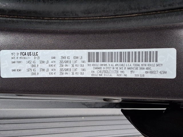 Recent Arrival! 2020 Jeep Grand Cherokee Limited 4WD, 1-Year SiriusXM Guardian Trial, 3.45 Rear Axle Ratio, 4-Wheel Disc Brakes, 4G LTE Wi-Fi Hot Spot, 506 Watt Amplifier, 6 Speakers, 8.4" Touchscreen Display, ABS brakes, Active Noise Control System, Air Conditioning, AM/FM radio: SiriusXM, Anti-whiplash front head restraints, Apple CarPlay, Apple CarPlay/Android Auto, Audio memory, Auto High Beam Headlamp Control, Auto-dimming door mirrors, Auto-dimming Rear-View mirror, Automatic temperature control, Bi-Xenon High-Intensity Discharge Headlamps, Brake assist, Bumpers: body-color, Cargo Compartment Cover, Compass, Delay-off headlights, Disassociated Touchscreen Display, Driver door bin, Driver vanity mirror, Dual front impact airbags, Dual front side impact airbags, Dual-Pane Panoramic Sunroof, Electronic Stability Control, Emergency communication system: SiriusXM Guardian, Engine Oil Cooler, Four wheel independent suspension, Front anti-roll bar, Front Bucket Seats, Front Center Armrest w/Storage, Front dual zone A/C, Front fog lights, Front License Plate Bracket, Front reading lights, Fully automatic headlights, Garage door transmitter, Google Android Auto, GPS Antenna Input, GPS Navigation, HD Radio, Heated door mirrors, Heated front seats, Heated Second Row Seats, Heated steering wheel, Illuminated entry, Integrated Center Stack Radio, Integrated Voice Command w/Bluetooth®, Knee airbag, Leather Shift Knob, Leather Trim Seats w/Perforated Inserts, Leather Trimmed Bucket Seats, LED Daytime Running Headlamps, Low tire pressure warning, Luxury Group II, Memory seat, Navigation System, Normal Duty Suspension, Occupant sensing airbag, Outside temperature display, Overhead airbag, Overhead console, Panic alarm, ParkView Rear Back-Up Camera, Passenger door bin, Passenger vanity mirror, Power door mirrors, Power driver seat, Power Liftgate, Power passenger seat, Power steering, Power Tilt/Telescope Steering Column, Power windows, Premium Alpine Speaker System, Premium Lighting Group, Quadra-Trac II 4WD System, Quick Order Package 2BH, Radio data system, Radio: Uconnect 4C Nav w/8.4" Display, Rain Sensitive Windshield Wipers, Rear anti-roll bar, Rear reading lights, Rear seat center armrest, Rear window defroster, Rear window wiper, Remote keyless entry, Security system, Selec-Terrain System, SiriusXM Satellite Radio, SiriusXM Traffic Plus, SiriusXM Travel Link, Speed control, Speed-sensing steering, Speed-Sensitive Wipers, Split folding rear seat, Spoiler, Steering wheel mounted audio controls, Tachometer, Telescoping steering wheel, Tilt steering wheel, Traction control, Trip computer, Turn signal indicator mirrors, USB Host Flip, Variably intermittent wipers, Ventilated Front Seats, Voltmeter, Wheels: 18" x 8.0" Tech Gray Aluminum (DISC).