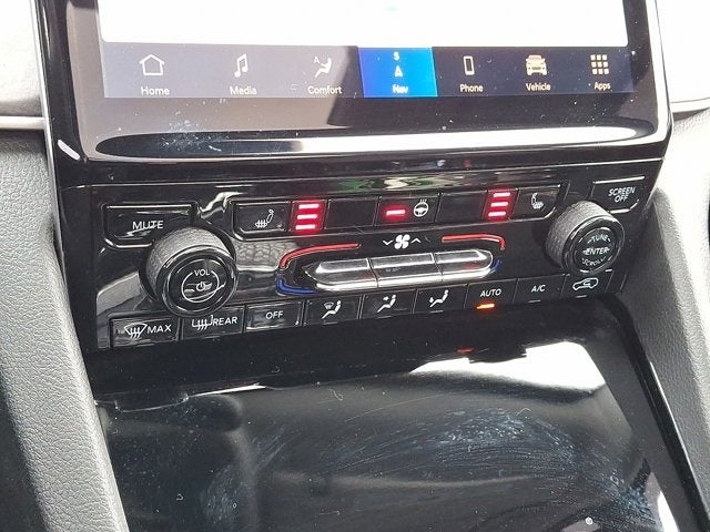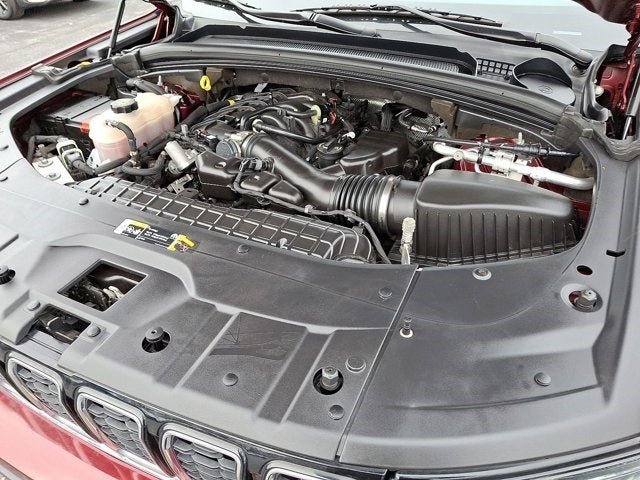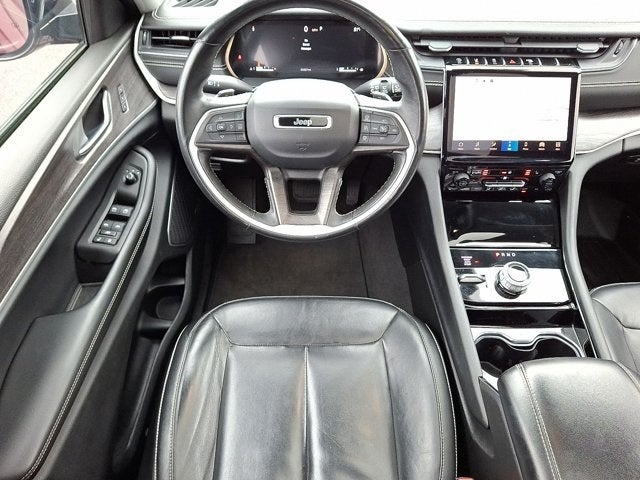 Below is all the standard equipment Quick Order Package 22E, FCA US LLC Certified Pre-Owned Certified, Dual-Pane Panoramic Sunroof, Interior Rear Facing Camera, 10.1 Touchscreen Display, 3.45 Rear Axle Ratio, 3rd row seats: split-bench, 4-Wheel Disc Brakes, 506 Watt Amplifier, 6 Speakers, 9 Amplified Speakers w/Subwoofer, ABS brakes, Air Conditioning, Alloy wheels, AM/FM radio: SiriusXM w/360L, Anti-whiplash front head restraints, Apple CarPlay, Apple CarPlay/Android Auto, Audio memory, Auto High-beam Headlights, Automatic temperature control, Brake assist, Bumpers: body-color, Capri Leather Seats, Compass, Connected Travel & Traffic Services, Connectivity - US/Canada, Delay-off headlights, Disassociated Touchscreen Display, Driver door bin, Driver vanity mirror, Dual front impact airbags, Dual front side impact airbags, Electronic Stability Control, Emergency communication system, Four wheel independent suspension, Front anti-roll bar, Front Bucket Seats, Front Center Armrest w/Storage, Front dual zone A/C, Front fog lights, Front reading lights, Fully automatic headlights, Garage door transmitter, Google Android Auto, GPS Antenna Input, GPS Navigation, HD Radio, Heated door mirrors, Heated front seats, Heated rear seats, Heated steering wheel, Illuminated entry, Integrated Center Stack Radio, Integrated Voice Command w/Bluetooth®, Knee airbag, Leather steering wheel, Low tire pressure warning, Manual Fold Seatbacks, Memory seat, Normal Duty Suspension, Occupant sensing airbag, Outside temperature display, Overhead airbag, Overhead console, Panic alarm, ParkView Rear Back-Up Camera, Passenger door bin, Passenger vanity mirror, Power door mirrors, Power driver seat, Power Liftgate, Power passenger seat, Power steering, Power windows, Radio data system, Radio: Uconnect 5 Nav w/10.1 Display, Radio: Uconnect 5 w/8.4 Display, Rear air conditioning, Rear anti-roll bar, Rear reading lights, Rear window defroster, Rear window wiper, Reclining 3rd row seat, Remote keyless entry, Roof rack: rails only, Security system, SiriusXM Satellite Radio, SiriusXM w/360L, Speed control, Speed-Sensitive Wipers, Split folding rear seat, Spoiler, Steering wheel mounted audio controls, Tachometer, Telescoping steer