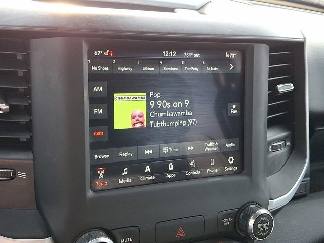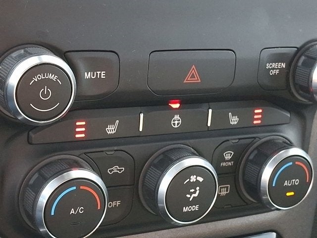 Below is all the standard equipment Bed Utility Group (MOPAR 4 Adjustable Cargo Tie-Down Hooks, MOPAR Deployable Bed Step, MOPAR Spray In Bedliner, and Pick-Up Box Lighting), Big Horn Level 2 Equipment Group (115V Auxiliary Power Outlet, 115V Auxiliary Rear Power Outlet, 2nd Row In Floor Storage Bins, 400W Inverter, Air Conditioning ATC w/Dual Zone Control, Auto-Dimming Exterior Driver Mirror, Auto-Dimming Rear-View Mirror, Black Premium Power Mirrors, Class IV Receiver Hitch, Cluster 7.0 TFT Color Display, Exterior Mirrors Courtesy Lamps, Exterior Mirrors w/Supplemental Signals, Foam Bottle Insert (Door Trim Panel), For More Info, Call 800-643-2112, Glove Box Lamp, Heated Front Seats, Heated Steering Wheel, Media Hub w/2 Charge Only USBs, ParkSense Front/Rear Park Assist w/Stop, Power 4-Way Driver Lumbar Adjust, Power 8-Way Driver Seat, Power Adjustable Pedals, Power-Folding Mirrors, Rear Dome w/On/Off Switch Lamp, Rear Power Sliding Window, Rear Window Defroster, Security Alarm, SiriusXM Radio Service, Sun Visors w/Illuminated Vanity Mirrors, and Universal Garage Door Opener), Quick Order Package 25Z Big Horn (Big Horn Badge), Certified Pre-Owned Certified, 9 Amplified Speakers w/Subwoofer, Exterior 115V AC Outlet, RamBox Cargo Management System, 3 Rear Seat Head Restraints, 3.21 Rear Axle Ratio, 4 Way Front Headrests, 4-Wheel Disc Brakes, 40/20/40 Split Bench Seat, 48V Belt Starter Generator, 6 Speakers, ABS brakes, Air Conditioning, Alloy wheels, AM/FM radio, Black Exterior Mirrors, Brake assist, Bumpers: chrome, Cloth Bench Seat, Compass, Delay-off headlights, Driver door bin, Dual front impact airbags, Dual front side impact airbags, Electronic Stability Control, Front anti-roll bar, Front Center Armrest w/Storage, Front fog lights, Front reading lights, Front Seat Back Map Pockets, Front wheel independent suspension, Fully automatic headlights, GPS Antenna Input, Heated door mirrors, Illuminated entry, Integrated Voice Command w/Bluetooth®, Leather steering wheel, Low tire pressure warning, Manufacturer's Statement of Origin, Occupant sensing airbag, Outside temperature display, Overhead airbag, Overhead console, Panic alarm, ParkView Rear Back-Up Camera, Passenger door bin, Passenger vanity mirror, Power door mirrors, Power steering, Power windows, Radio data system, Radio: Uconnect 3 w/5 Display, Radio: Uconnect 4 w/8.4 Display, Rear 60/40 Folding Seat, Rear anti-roll bar, Rear seat center armrest, Rear step bumper, Remote keyless entry, Remote Start System, Speed control, Split folding rear seat, Steering wheel mounted audio controls, Tachometer, Telescoping steering wheel, Tilt steering wheel, Traction control, Trip computer, Variably intermittent wipers, Voltmeter, and Wheels: 18 x 8 Cast-Aluminum Painted.