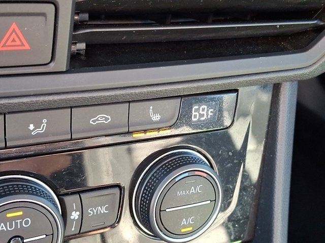 Below is all the standard equipment Titan Black w/Perforated V-Tex Leatherette Seat Trim, ABS brakes, Alloy wheels, Electronic Stability Control, Front dual zone A/C, Heated door mirrors, Heated front seats, Illuminated entry, Low tire pressure warning, Remote keyless entry, Traction control, 4 Speakers, 4-Wheel Disc Brakes, Air Conditioning, AM/FM radio, Automatic temperature control, Brake assist, Bumpers: body-color, Delay-off headlights, Driver door bin, Driver vanity mirror, Dual front impact airbags, Dual front side impact airbags, Emergency communication system: VW Car-Net services (capabilities require enrollment or subscription), Exterior Parking Camera Rear, Front anti-roll bar, Front Bucket Seats, Front Center Armrest, Front reading lights, Front wheel independent suspension, Fully automatic headlights, Heated Front Comfort Sport Seats, Leather Shift Knob, Occupant sensing airbag, Outside temperature display, Overhead airbag, Overhead console, Panic alarm, Passenger door bin, Passenger vanity mirror, Perforated V-Tex Leatherette Seat Trim, Power door mirrors, Power driver seat, Power moonroof: Panoramic, Power steering, Power windows, Radio data system, Radio: Composition Color w/6.5 Touchscreen, Rear anti-roll bar, Rear reading lights, Rear seat center armrest, Rear window defroster, Speed control, Speed-sensing steering, Split folding rear seat, Steering wheel mounted audio controls, Tachometer, Telescoping steering wheel, Tilt steering wheel, Trip computer, Variably intermittent wipers, and Wheels: 16 2-Tone Machined Alloy.
