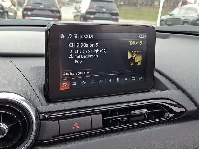 Below is all the standard equipment Appearance Package (Black Rear Bumper Skirt, Black Rear Lip Spoiler, and Black Side Sill Extensions), Navigation System, 4-Wheel Disc Brakes, 9 Speakers, ABS brakes, Air Conditioning, Alloy wheels, AM/FM radio: SiriusXM, AppLink/Apple CarPlay and Android Auto, Auto High-beam Headlights, Auto-dimming door mirrors, Auto-dimming Rear-View mirror, Automatic temperature control, Brake assist, Bumpers: body-color, Convertible roof lining, Convertible roof wind blocker, Delay-off headlights, Driver vanity mirror, Dual front impact airbags, Dual front side impact airbags, Electronic Stability Control, Emergency communication system: MAZDA CONNECT, Exterior Parking Camera Rear, Four wheel independent suspension, Front anti-roll bar, Front Bucket Seats, Front Center Armrest, Fully automatic headlights, Garage door transmitter: HomeLink, Glass rear window, Heated door mirrors, Heated Front Bucket Seats, Heated front seats, Illuminated entry, Leather Shift Knob, Leather Upholstery w/Light Gray Stitching, Low tire pressure warning, MAZDA CONNECT, Occupant sensing airbag, Outside temperature display, Panic alarm, Passenger vanity mirror, Power door mirrors, Power steering, Power windows, Radio data system, Radio: Bose Audio System w/AudioPilot, Rain sensing wipers, Rear anti-roll bar, Rear window defroster, Remote keyless entry, Speed control, Speed-sensing steering, Sport steering wheel, Steering wheel mounted audio controls, Tachometer, Telescoping steering wheel, Tilt steering wheel, Traction control, Trip computer, Variably intermittent wipers, Wheel Locks, and Wheels: 17 x 7 Dark Silver Aluminum Alloy.