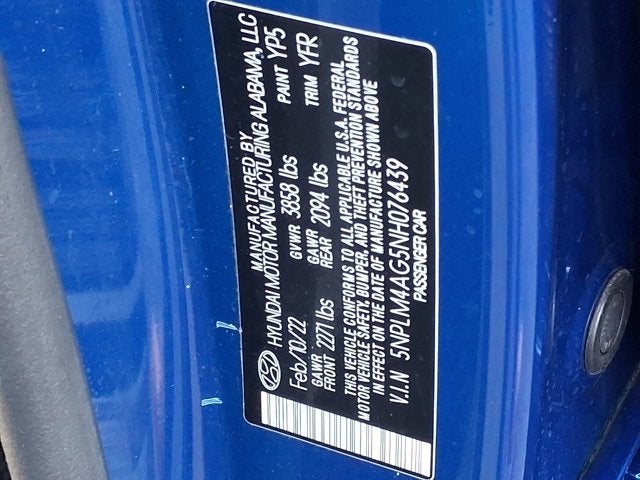 2022 Hyundai Elantra SEL in Intense Blue with Medium Gray Cloth.