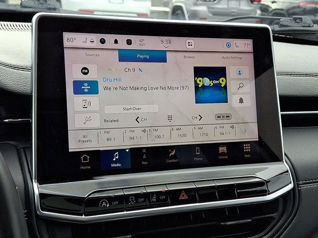 Below is all the standard equipment High Altitude Package, Quick Order Package 2GF High Altitude (10.1 Touchscreen Display, 4G LTE Wi-Fi Hot Spot, Alexa Built-In, Auto High Beam Headlamp Control, Black Headliner, Body Color Door Claddings, Body Color Exterior Sill Moldings, Body Color Fascias, Body Color Wheel Flares, Cluster 10.25 TFT Color Display, Connected Travel & Traffic Services, Disassociated Touchscreen Display, For Details, Visit DriveUconnect.com, For More Info, Call 800-643-2112, Global Telematics Box Module (TBM), Gloss Black Exterior Mirrors, Gloss Black Surround/Neutral Gray Rings, GPS Navigation, Gray Day Light Opening Moldings, HD Radio, Integrated Voice Command w/Bluetooth®, LED Low/Highbeam Projector Headlamps, Liquid Chrome/Chainmail Hydro Accent, Neutral Gray Exterior Accents, Neutral Gray Exterior Badging, Neutral Gray Side Roof Rails, Power Front/Fixed Rear Full Sunroof, Premium Alpine Speaker System, Premium LED Fog Lamps, Premium Taillamps, Radio: Uconnect 5 Nav w/10.1 Display, SiriusXM Guardian - Included Trial (B), SiriusXM Radio Service, SiriusXM Satellite Radio, SiriusXM w/360L, Tungsten Accent Stitching, and Wheels: 19 x 7.5 Aluminum Painted), Jeep Combined Certified, 4WD, 3.73 Axle Ratio, 4-Wheel Disc Brakes, 6 Speakers, ABS brakes, Air Conditioning, Alloy wheels, AM/FM radio: SiriusXM, Anti-whiplash front head restraints, Auto High-beam Headlights, Auto-dimming Rear-View mirror, Automatic temperature control, Brake assist, Bumpers: body-color, Compass, Delay-off headlights, Driver door bin, Driver vanity mirror, Dual front impact airbags, Dual front side impact airbags, Electronic Stability Control, Emergency communication system: SiriusXM Guardian, Four wheel independent suspension, Front anti-roll bar, Front Bucket Seats, Front Center Armrest w/Storage, Front dual zone A/C, Front fog lights, Front reading lights, Fully automatic headlights, Heated door mirrors, Heated front seats, Heated steering wheel, Illuminated entry, Knee airbag, Leather Shift Knob, Leather Trimmed Bucket Seats, Low tire pressure warning, Occupant sensing airbag, Outside temperature display, Overhead airbag, Overhead console, Panic alarm, ParkView Rear Back-Up Camera, Passenger door bin, Passenger vanity mirror, Power door mirrors, Power driver seat, Power steering, Power windows, Radio: Uconnect 5 w/10.1 Display, Rain sensing wipers, Rear anti-roll bar, Rear seat center armrest, Rear window defroster, Rear window wiper, Remote keyless entry, Roof rack: rails only, Security system, Speed control, Split folding rear seat, Spoiler, Steering wheel mounted audio controls, Tachometer, Telescoping steering wheel, Tilt steering wheel, Traction control, Trip computer, Turn signal indicator mirrors, Variably intermittent wipers, and Wheels: 18 x 7 Painted Diamond Cut AluminuM.