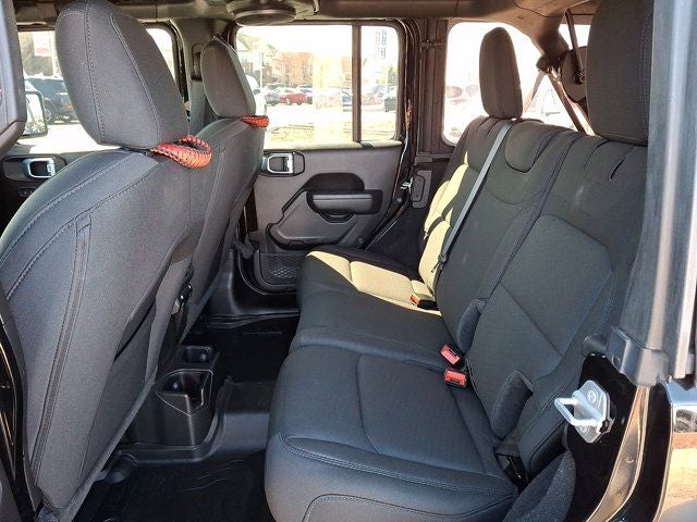 Below is all the standard equipment LED Headlamp & Fog Lamp Group (Front LED Fog Lamps and LED Premium Reflector Headlamps), Quick Order Package 22W Willys (4-Wheel Drive Swing Gate Decal, 97 MPH Vehicle Max Speed Calibration, Anti-Spin Differential Rear Axle, Automatic Headlamps, Black Grille, Black Trail Rated Badge, Deep Tint Sunscreen Windows, Front 1-Touch Down Power Windows, Leather Wrapped Steering Wheel, Matte Black Jeep Badge, Mold In Color Bumper w/Gloss Black, MOPAR All-Weather Floor Mats, Power Heated Mirrors, Remote Keyless Entry, Security Alarm, Speed Sensitive Power Locks, Sun Visors w/Illuminated Vanity Mirrors, Wheels: 17 x 7.5 Moab Black Aluminum, Willys, and Willys Hood Decal), Technology Group (2-Door Passive Entry, Front Door Locks, Air Conditioning w/Auto Temperature Control, Air Filtering, Cluster 7.0 TFT Color Display, SiriusXM Radio Service, and SiriusXM Satellite Radio), Jeep Combined Certified, 110 MPH Vehicle Max Speed Calibration, 3.45 Rear Axle Ratio, 4-Wheel Disc Brakes, 8 Speakers, ABS brakes, Air Conditioning, AM/FM radio, Apple CarPlay/Android Auto, Aux Battery, Brake assist, Cloth Low-Back Bucket Seats, Compass, Delay-off headlights, Driver door bin, Driver vanity mirror, Dual front impact airbags, Dual front side impact airbags, Electronic Stability Control, Emergency communication system: SiriusXM Guardian, Engine Oil Cooler, Front anti-roll bar, Front Bucket Seats, Front Center Armrest w/Storage, Front fog lights, Front reading lights, Integrated roll-over protection, Low tire pressure warning, Non-Lock Fuel Cap w/o Discriminator, Normal Duty Suspension, Occupant sensing airbag, Outside temperature display, ParkView Rear Back-Up Camera, Passenger door bin, Passenger vanity mirror, Power steering, Radio data system, Radio: Uconnect 4 w/7 Display, Rear anti-roll bar, Rear reading lights, Speed control, Split folding rear seat, Steering wheel mounted audio controls, Stop-Start Dual Battery System, Tachometer, Telescoping steering wheel, Tilt steering wheel, Traction control, Trip computer, and Variably intermittent wipers.