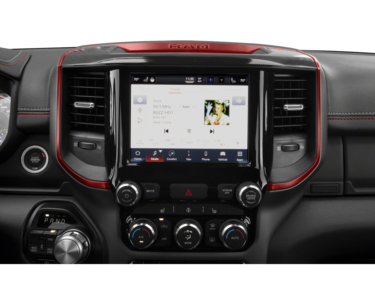 2022 Ram 1500 Rebel in Bright White Clearcoat with Red/Black Cloth.