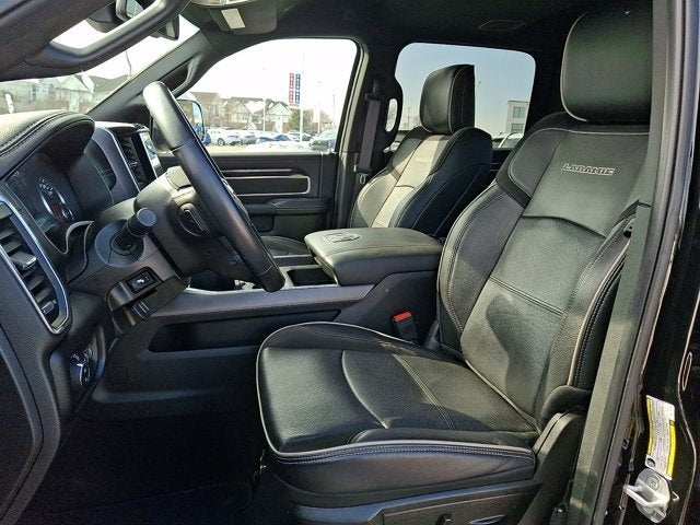 Below is all the standard equipment Bed Utility Group (LED Bed Lighting, MOPAR Deployable Bed Step, and MOPAR Spray In Bedliner), Heavy Duty Snow Plow Prep Group (220 Amp Alternator), Laramie Level C Equipment Group (DISC) (2nd Row In Floor Storage Bins, Auto High Beam Headlamp Control, Exterior Mirrors w/Memory, Foam Bottle Insert (Door Trim Panel), Mirror-Mounted Aux Reverse Lamps, Power Adjustable Pedals w/Memory, Power Multi-Function Manual Folding Mirrors, Radio/Driver Seat/Mirrors/Pedals Memory, Rain Sensitive Windshield Wipers, Remote Tailgate Release, and Ventilated Front Seats), Quick Order Package 2GH Laramie, Sport Appearance Package (Black Interior Accents, Body Color Door Handles, Body Color Grille Surround, Painted Front Bumper, Painted Rear Bumper, and Sport Decal), Certified Pre-Owned Certified, 4G LTE Wi-Fi Hot Spot, 8.4 Touchscreen Display, Alexa Built-In, All R1 High Radios, All Radio Equipped Vehicles, Anti-Spin Differential Rear Axle, Apple CarPlay, Connected Travel & Traffic Services, Connectivity - US/Canada, Disassociated Touchscreen Display, For Details, Visit DriveUconnect.com, For More Info, Call 800-643-2112, Global Telematics Box Module (TBM), Google Android Auto, GPS Antenna Input, GPS Navigation, HD Radio, Integrated Center Stack Radio, Integrated Voice Command w/Bluetooth®, Off-Road Information Pages, ParkView Rear Back-Up Camera, Radio: Uconnect 5 Nav w/8.4 Display, Selectable Tire Fill Alert, SiriusXM Radio Service, SiriusXM w/360L, Tow Hooks, Wheels: 18 x 8.0 Polished Aluminum, 10 Speakers, 115V Auxiliary Rear Power Outlet, 2 Way Rear Headrest Seat, 3.73 Axle Ratio, 4 Way Front Headrests, 4-Wheel Disc Brakes, ABS brakes, Active Noise Control System, Adjustable pedals, Air Conditioning, Alloy wheels, AM/FM radio: SiriusXM, Apple CarPlay/Android Auto, Auto-dimming Rear-View mirror, Automatic temperature control, Bluetooth® Handsfree Phone & Audio, Brake assist, Bumpers: chrome, Chrome Exterior Mirrors, Chrome Flat Wheel-to-Wheel Side Steps, Compass, Dash Pass Thru Wire Circuits, Delay-off headlights, Driver door bin, Driver vanity mirror, Dual front impact airbags, Dual front side impact airbags, Electronic Stability Control, Electronically Controlled Throttle, Exterior Mirrors Courtesy Lamps, Exterior Mirrors w/Heating Element, Exterior Mirrors w/Supplemental Signals, Front anti-roll bar, Front Center Armrest w/Storage, Front dual zone A/C, Front fog lights, Front reading lights, Front Seat Back Map Pockets, Fully automatic headlights, Garage door transmitter, Heated door mirrors, Heated Front Seats, Heated front seats, Heated Steering Wheel, Heated steering wheel, I/P Mounted Auxiliary Switches, Illuminated entry, Leather steering wheel, Leather Trim 40/20/40 Bench Seat, Low tire pressure warning, Mirror Running Lights, Occupant sensing airb