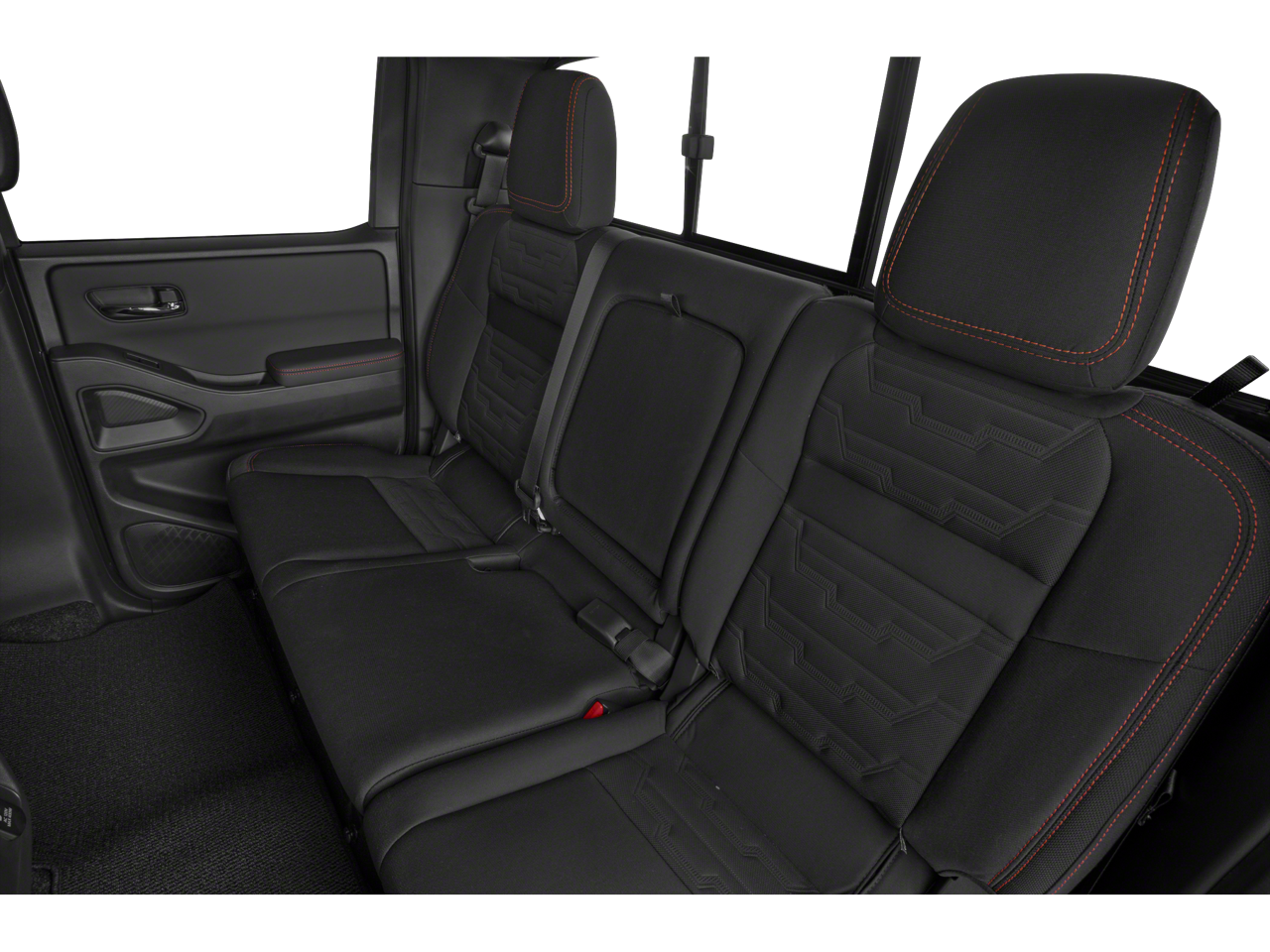 Below is all the standard equipment Off-Road Protection Package, PRO Convenience Package (120V Power Outlet in Bed, 120V Power Outlet in Rear Center Console, Bed Under-Rail Lighting, Heated Front Seats, Heated Outside Mirrors, Heated Steering Wheel, Intelligent Around View Monitor (I-AVM), Remote Engine Starter, Spray-In Bedliner, Trailer Hitch w/Wiring Harness, Utili-Track System, and Wireless Charging For Personal Devices), PRO-4X Premium Package (17 Accessory Dark Beadlock Style Alloy Wheels, Auto-Dimming Mirror, Auto-Tilt & Slide Sunroof w/Manual Shade, Fender Premium Audio System w/10 Speakers, Front & Rear Leather Seat Trim (1st/2nd Rows), HomeLink UGDO, and Partial Under-Seat Storage Delete), Technology Package (Blind Spot Warning, High Beam Assist (HBA), Intelligent Cruise Control, Lane Departure Warning System, Rear Automatic Braking (RAB), Rear Cross Traffic Alert (RCTA), and Rear Sonar System), Tow Package: Hitch, Tow Harness, 4WD, 3.692 Axle Ratio, 4-Wheel Disc Brakes, 6 Speakers, ABS brakes, Air Conditioning, Alloy wheels, AM/FM radio: SiriusXM, Anti-whiplash front head restraints, Automatic temperature control, Brake assist, Bumpers: body-color, Delay-off headlights, Driver door bin, Driver vanity mirror, Dual front impact airbags, Dual front side impact airbags, Electronic Stability Control, Electronic Tailgate Lock, Emergency communication system: NissanConnect Services, Front anti-roll bar, Front Bucket Seats, Front Center Armrest, Front dual zone A/C, Front fog lights, Front reading lights, Front wheel independent suspension, Fully automatic headlights, Illuminated entry, Knee airbag, Leather Shift Knob, Low tire pressure warning, Navigation system: Nissan Navigation with Voice Recognition, Occupant sensing airbag, Off-Road Style Step Rails, Overhead airbag, Overhead console, Panic alarm, Passenger door bin, Passenger vanity mirror, Power door mirrors, Power driver seat, Power steering, Power windows, PRO Embroidered Premium Cloth Seat Trim, PRO-4X Carpeted Floor Mats, PRO-4X Mud Flaps, Radio data system, Radio: SXM/AM/FM/AUX/USB Audio System w/6 Speakers, Rear anti-roll bar, Rear seat center armrest, Rear step bumper, Remote keyless entry, Security system, Speed control, Speed-sensing steering, Split folding rear seat, Steering wheel mounted audio controls, Tachometer, Tilt steering wheel, Traction control, Trip computer, Variably intermittent wipers, and Voltmeter.