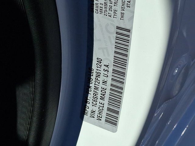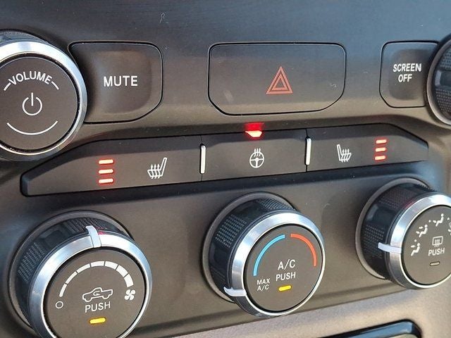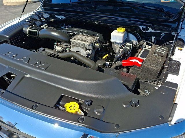 Below is all the standard equipment Bed Utility Group (MOPAR 4 Adjustable Cargo Tie-Down Hooks, MOPAR Deployable Bed Step, MOPAR Spray In Bedliner, and Pick-Up Box Lighting), Big Horn Level 1 Equipment Group (2nd Row In Floor Storage Bins, 4G LTE Wi-Fi Hot Spot, 8.4 Touchscreen Display, Apple CarPlay, Auto-Dimming Exterior Driver Mirror, Auto-Dimming Rear-View Mirror, Black Exterior Mirrors, Black Premium Power Mirrors, Bluetooth® Handsfree Phone & Audio, Class IV Receiver Hitch, Connectivity - US/Canada, Convex Wide-Angle Exterior Mirror Insert, Electric Shift-On-Demand Transfer Case, Exterior Mirrors Courtesy Lamps, Exterior Mirrors w/Heating Element, Exterior Mirrors w/Supplemental Signals, For Details, Visit DriveUconnect.com, For More Info, Call 800-643-2112, Front Fog Lamps, Glove Box Lamp, Google Android Auto, GPS Antenna Input, Heated Front Seats, Heated Steering Wheel, Integrated Center Stack Radio, Passenger Sun Visor w/Illuminated Mirror, Power-Folding Mirrors, Radio: Uconnect 5 W w/8.4 Display, Rear Dome w/On/Off Switch Lamp, Rear Power Sliding Window, Rear Window Defroster, SiriusXM Satellite Radio, and USB Host Flip), Quick Order Package 27Z Big Horn (Big Horn Badge), Certified Pre-Owned Certified, 3 Rear Seat Head Restraints, 3.21 Rear Axle Ratio, 33 Gallon Fuel Tank, 4 Way Front Headrests, 4-Wheel Disc Brakes, 48V Belt Starter Generator, 6 Speakers, ABS brakes, Active Noise Control System, Air Conditioning, Alloy wheels, AM/FM radio, Brake assist, Bumpers: chrome, Cloth Bench Seat, Compass, Delay-off headlights, Driver door bin, Dual front impact airbags, Dual front side impact airbags, Dual Rear Exhaust w/Bright Tips, Electronic Stability Control, Emergency communication system: SiriusXM Guardian, Front anti-roll bar, Front Center Armrest w/Storage, Front License Plate Bracket, Front reading lights, Front Seat Back Map Pockets, Front wheel independent suspension, Fully automatic headlights, Global Telematics Box Module (TBM), Heated door mirrors, Heavy-Duty Engine Cooling, HEMI Badge, Illuminated entry, Integrated Voice Command w/Bluetooth®, Leather steering wheel, Low tire pressure warning, Occupant sensing airbag, Outside temperature display, Overhead airbag, Overhead console, Panic alarm, ParkView Rear Back-Up Camera, Passenger door bin, Passenger vanity mirror, Power door mirrors, Power steering, Power windows, Radio data system, Radio: Uconnect 3 w/5 Display, RAM Grille Badge - Chrome, Rear 60/40 Folding Seat, Rear anti-roll bar, Rear seat center armrest, Rear step bumper, Rear Wheelhouse Liners, Remote keyless entry, Speed control, Split folding rear seat, Steering wheel mounted audio controls, Tachometer, Telescoping steering wheel, Tilt steering wheel, Traction control, Trailer Brake Con