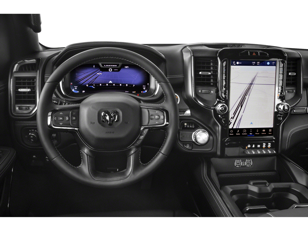 Below is all the standard equipment Night Edition (Accent Color Door Handles, Accent Color Premium Power Mirrors, Auto-Dimming Exterior Driver Mirror, Black Day Light Opening Moldings, Black Exterior Truck Badging, Black Grille Surround Texture 7 Black, Black Headlamp Bezels, Black Painted Exterior Mirrors Caps, Body Color Front Bumper, Body Color Rear Bumper w/Step Pads, Convex Wide-Angle Exterior Mirror Insert, Dual Exhaust w/Black Tips, Exterior Mirrors Courtesy Lamps, Exterior Mirrors w/Heating Element, Exterior Mirrors w/Memory, Exterior Mirrors w/Supplemental Signals, harman/kardon 19 Speaker Premium Sound, Power-Folding Mirrors, RAM Grille Badge - Black, Sport Performance Hood, Tow Hooks, Tri-Fold Tonneau Cover, and Wheels: 22 x 9 Black Aluminum), Quick Order Package 27M Limited, 10 Speakers, 3.21 Rear Axle Ratio, 4 Way Front Headrests, 4-Wheel Disc Brakes, 48V Belt Starter Generator, ABS brakes, Active Noise Control System, Adjustable pedals, Air Conditioning, Alloy wheels, AM/FM radio: SiriusXM with 360L, Apple CarPlay/Android Auto, Audio memory, Auto High-beam Headlights, Auto-dimming door mirrors, Auto-dimming Rear-View mirror, Auto-leveling suspension, Automatic temperature control, Bodyside moldings, Brake assist, Bucket Seats, Bumpers: chrome, Chrome Exterior Mirrors, Compass, Delay-off headlights, Driver door bin, Driver Seat Memory, Driver vanity mirror, Dual front impact airbags, Dual front side impact airbags, Dual Rear Exhaust w/Bright Tips, Electronic Stability Control, Front anti-roll bar, Front Bucket Seats, Front Center Armrest w/Storage, Front dual zone A/C, Front fog lights, Front License Plate Bracket, Front reading lights, Front Seat Back Map Pockets, Front wheel independent suspension, Full Length Premium Floor Console, Fully automatic headlights, Garage door transmitter, Genuine wood console insert, Genuine wood dashboard insert, Genuine wood door panel insert, Heated door mirrors, Heated Front Seats, Heated front seats, Heated rear seats, Heated Second Row Seats, Heated Steering Wheel, Heated steering wheel, Heavy-Duty Engine Cooling, HEMI Badge, Illuminated entry, Leather steering wheel, Low tire pressure warning, Manufacturer's Statement of Origin, Memory seat, Navigation System, Occupant sensing airbag, Outside temperature display, Overhead airbag, Overhead console, Panic alarm, ParkView Rear Back-Up Camera, Passenger door bin, Passenger vanity mirror, Passive Tuned Mass Damper, Pedal memory, Power 4-Way Driver Lumbar Adjust, Power 4-Way Passenger Lumbar Adjust, Power 8-Way Driver & Passenger Seats, Power door mirrors, Power driver seat, Power passenger seat, Power steering, Power windows, Premium Leather Trimmed Bucket Seats, Radio data system, Radio: Uconnect 5 Nav w/12.0 Display, Rain sensing wipers, Rear 60/40 Folding Split Recline Seat, Rear anti-roll