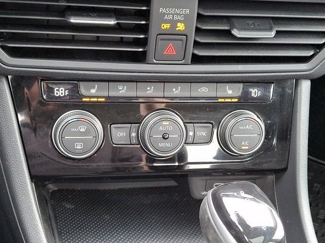Below is all the standard equipment Panoramic Sunroof Package (Dual Front Reading Lights, Illuminated Vanity Mirrors, Overhead Storage Compartment, and Power Tilting & Sliding Panoramic Sunroof), Titan Black w/V-Tex Leatherette Seat Trim, 4 Speakers, 4-Wheel Disc Brakes, ABS brakes, Active Blind Spot Monitor, Air Conditioning, Alloy wheels, AM/FM radio, Auto-dimming Rear-View mirror, Automatic temperature control, Brake assist, Bumpers: body-color, Delay-off headlights, Driver door bin, Driver vanity mirror, Dual front impact airbags, Dual front side impact airbags, Electronic Stability Control, Emergency communication system: VW Car-Net Safe & Secure 5-year, Exterior Parking Camera Rear, Front anti-roll bar, Front Bucket Seats, Front Center Armrest, Front dual zone A/C, Front wheel independent suspension, Fully automatic headlights, Heated door mirrors, Heated Front Comfort Sport Seats, Heated front seats, Illuminated entry, Leather Shift Knob, Low tire pressure warning, Occupant sensing airbag, Outside temperature display, Overhead airbag, Overhead console, Panic alarm, Passenger door bin, Passenger vanity mirror, Power door mirrors, Power driver seat, Power steering, Power windows, Radio data system, Radio: MIB3 Composition Color w/6.5 Touchscreen, Rain sensing wipers, Rear anti-roll bar, Rear reading lights, Rear seat center armrest, Rear window defroster, Remote keyless entry, Speed control, Speed-sensing steering, Split folding rear seat, Steering wheel mounted audio controls, Tachometer, Telescoping steering wheel, Tilt steering wheel, Traction control, Trip computer, V-Tex Leatherette Seat Trim, Variably intermittent wipers, and Wheels: 17 Twin 5-Spoke Silver Painted Alloy.