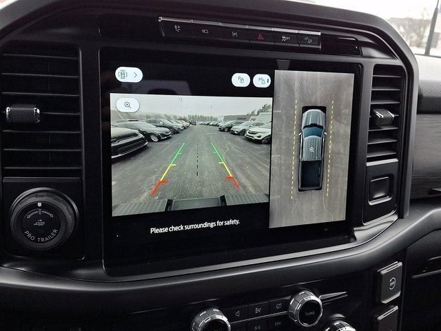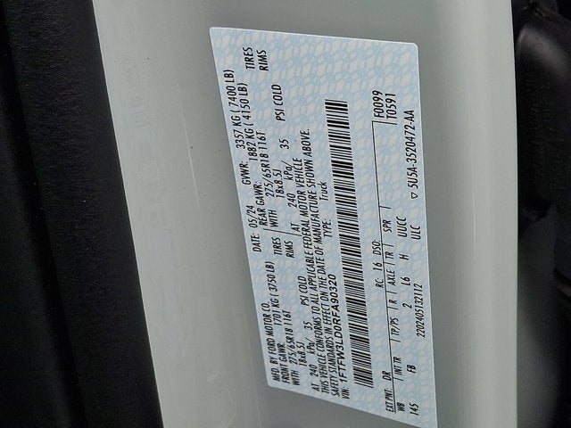 Below is all the standard equipment GVWR: 7,400 lbs Payload Package, Bed Utility Package (4 Pickup Box Tie-Down Plates, LED Box Lighting, and Tailgate Step w/Tailgate Work Surface), Equipment Group 302A Mid (Cloth 40/Console/40 Front Seats), FX4 Off-Road Package, Mobile Office Package (Console Worksurface and Partitioned Lockable Rear Storage), Tow/Haul Package, 3.5L PowerBoost Full-Hybrid V6, 4WD, 4-Wheel Disc Brakes, 6 Speakers, ABS brakes, Air Conditioning, Alloy wheels, AM/FM radio: SiriusXM with 360L, Auto High-beam Headlights, Auto-dimming Rear-View mirror, Automatic temperature control, Brake assist, Bumpers: chrome, Chrome wheels, Cloth 40/20/40 Front Seat, Compass, Delay-off headlights, Driver door bin, Driver vanity mirror, Dual front impact airbags, Dual front side impact airbags, Electronic Stability Control, Emergency communication system: SYNC 4 911 Assist, Front anti-roll bar, Front Center Armrest w/Storage, Front dual zone A/C, Front fog lights, Front License Plate Bracket, Front reading lights, Front wheel independent suspension, Fully automatic headlights, Heated door mirrors, Illuminated entry, Low tire pressure warning, Navigation system: Connected Navigation, Occupant sensing airbag, Outside temperature display, Overhead airbag, Overhead console, Panic alarm, Passenger door bin, Passenger vanity mirror, Power door mirrors, Power driver seat, Power steering, Power windows, Pro Power Onboard - 7.2KW, Radio data system, Radio: AM/FM SiriusXM w/360L, Rear reading lights, Rear step bumper, Rear window defroster, Remote keyless entry, Security system, Speed control, Split folding rear seat, Steering wheel mounted audio controls, SYNC 4 w/Enhanced Voice Recognition, Tachometer, Telescoping steering wheel, Tilt steering wheel, Traction control, Trip computer, Variably intermittent wipers, Voltmeter, and Wheels: 18 Chrome-Like PVD.