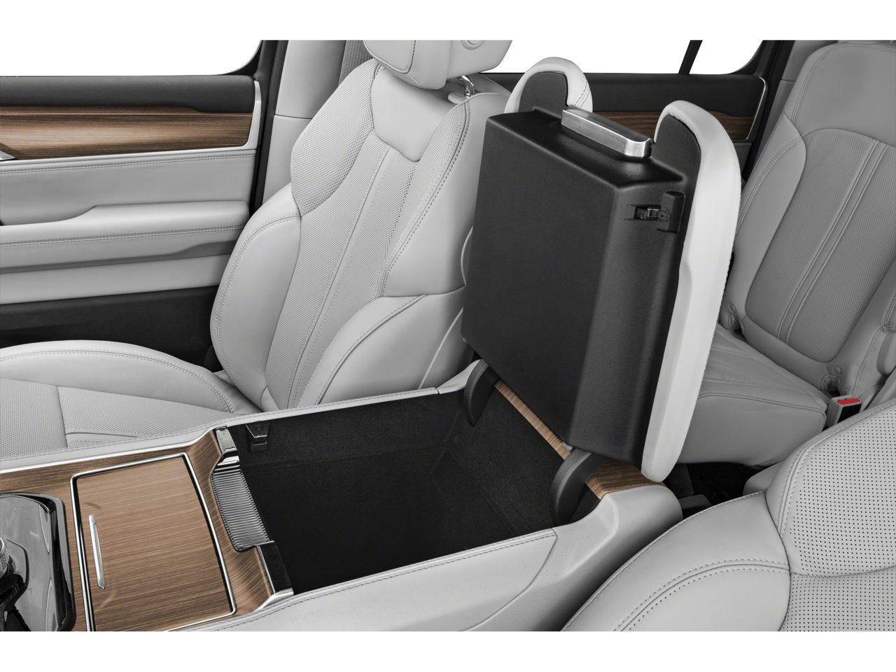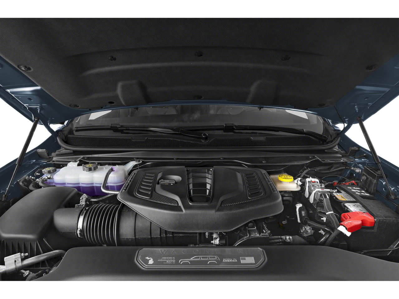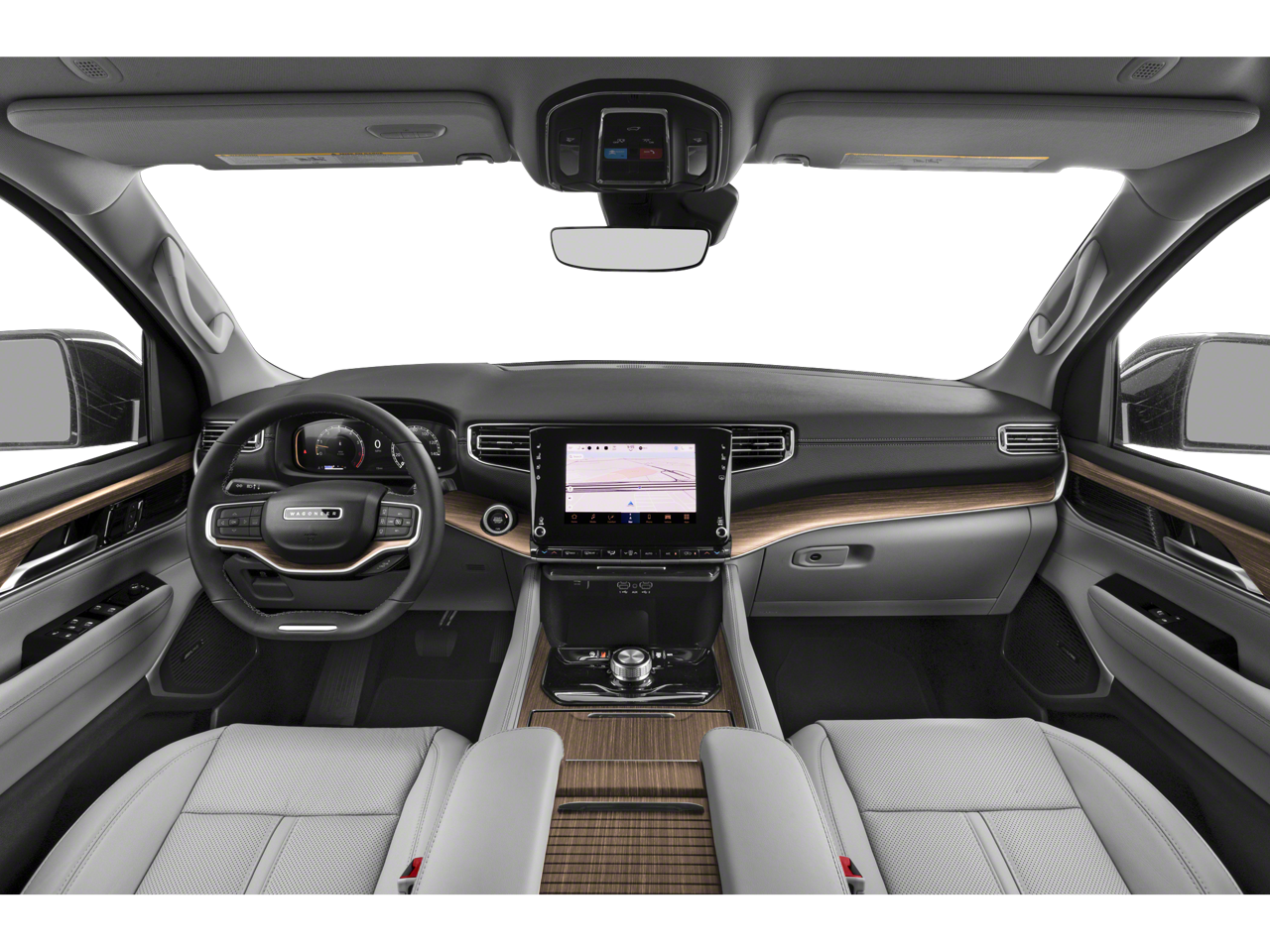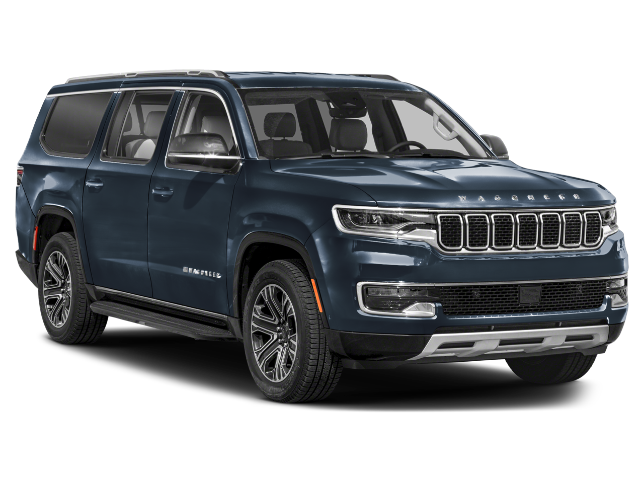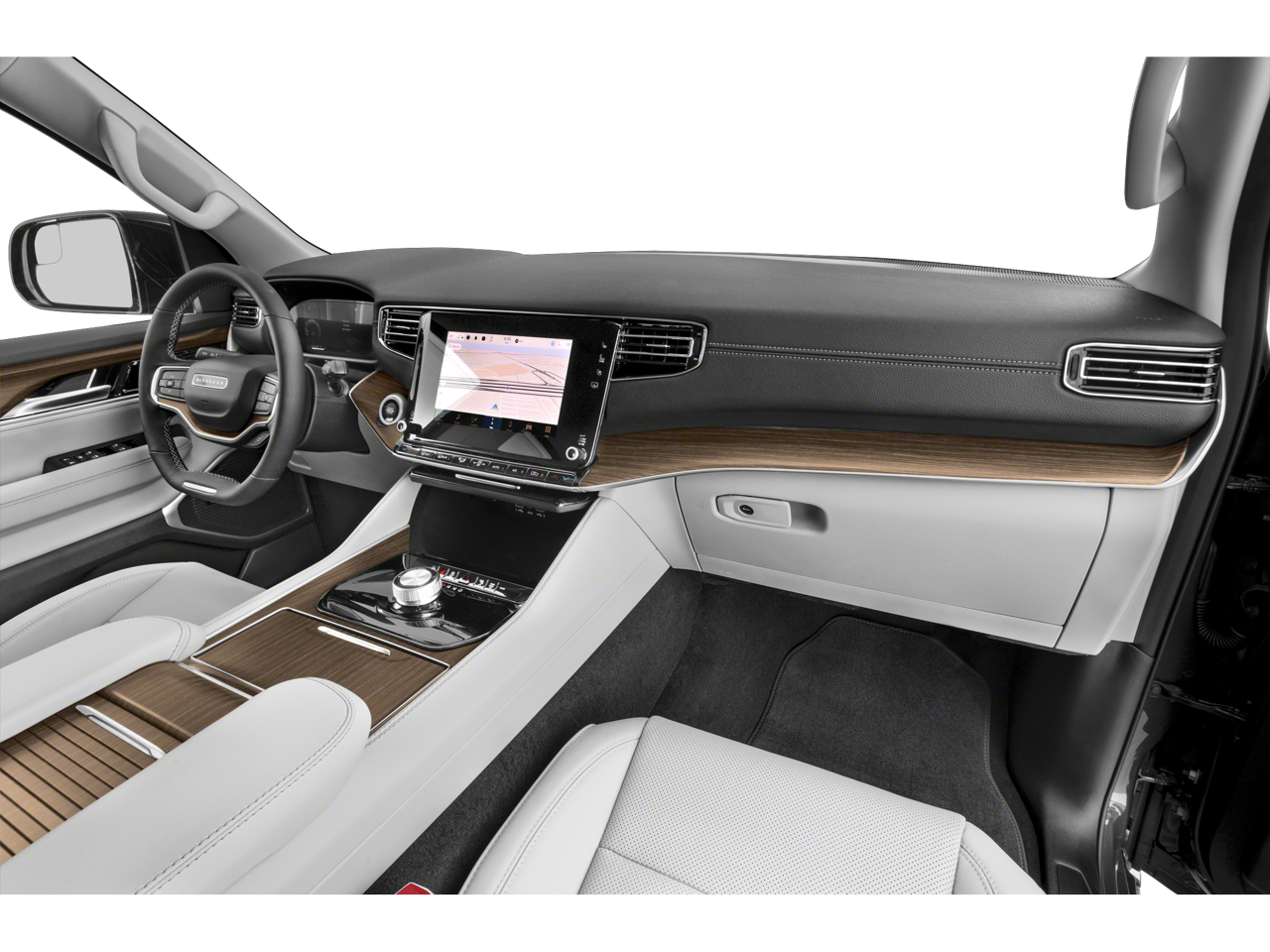 Below is all the standard equipment Flexible Seating Group (40/20/40 2nd Row Bench Power Tip/Slide, 8-Passenger Seating, and Full Length Floor Console), Quick Order Package 25J, 10 Speakers, 3.55 Rear Axle Ratio, 3rd row seats: bench, 4-Wheel Disc Brakes, ABS brakes, Adjustable pedals, Air Conditioning, Alloy wheels, AM/FM radio: SiriusXM with 360L, Anti-whiplash front head restraints, Apple CarPlay/Android Auto, Audio memory, Auto-dimming door mirrors, Auto-dimming Rear-View mirror, Auto-leveling suspension, Automatic temperature control, Brake assist, Bumpers: body-color, Compass, Delay-off headlights, Driver door bin, Driver vanity mirror, Driver's Seat Mounted Armrest, Dual front impact airbags, Dual front side impact airbags, Electronic Stability Control, Emergency communication system: Wagoneer Connect, Exterior Parking Camera Rear, Four wheel independent suspension, Front anti-roll bar, Front Bucket Seats, Front Center Armrest w/Storage, Front dual zone A/C, Front fog lights, Front reading lights, Fully automatic headlights, Garage door transmitter, Genuine wood console insert, Genuine wood dashboard insert, Genuine wood door panel insert, Heated door mirrors, Heated front seats, Heated steering wheel, Illuminated entry, Knee airbag, Leather Trimmed Bucket Seats, Low tire pressure warning, Memory seat, Navigation System, Normal Duty Suspension, Occupant sensing airbag, Outside temperature display, Overhead airbag, Overhead console, Panic alarm, Passenger door bin, Passenger seat mounted armrest, Passenger vanity mirror, Pedal memory, Power adjustable front head restraints, Power door mirrors, Power driver seat, Power Liftgate, Power passenger seat, Power steering, Power windows, Radio data system, Radio: Uconnect 5 Nav w/10.1 Display, Rain sensing wipers, Rear air conditioning, Rear anti-roll bar, Rear reading lights, Rear seat center armrest, Rear window defroster, Rear window wiper, Reclining 3rd row seat, Remote keyless entry, Security system, Speed control, Speed-sensing steering, Speed-Sensitive Wipers, Split folding rear seat, Steering wheel memory, Steering wheel mounted audio controls, Tachometer, Telescoping steering wheel, Tilt steering wheel, Traction control, Trip computer, Turn signal indicator mirrors, Variably intermittent wipers, Ventilated front seats, Voltmeter, and Wheels: 20 x 9.0 Premium 2 Aluminum.