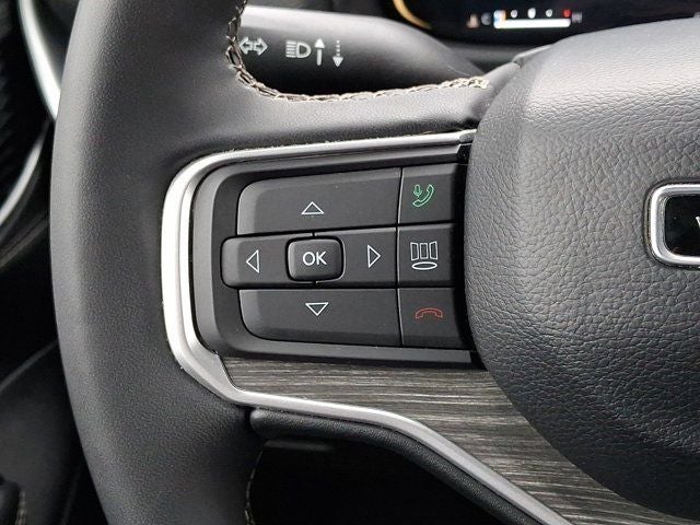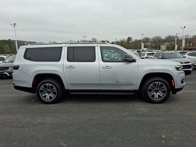 Below is all the standard equipment Flexible Seating Group (40/20/40 2nd Row Bench Power Tip/Slide, 8-Passenger Seating, and Full Length Floor Console), Quick Order Package 25J, FCA US LLC Certified Pre-Owned Certified, 10 Speakers, 3.55 Rear Axle Ratio, 3rd row seats: bench, 4-Wheel Disc Brakes, ABS brakes, Adjustable pedals, Air Conditioning, Alloy wheels, AM/FM radio: SiriusXM with 360L, Anti-whiplash front head restraints, Apple CarPlay/Android Auto, Audio memory, Auto-dimming door mirrors, Auto-dimming Rear-View mirror, Auto-leveling suspension, Automatic temperature control, Brake assist, Bumpers: body-color, Compass, Delay-off headlights, Driver door bin, Driver vanity mirror, Driver's Seat Mounted Armrest, Dual front impact airbags, Dual front side impact airbags, Electronic Stability Control, Emergency communication system: Wagoneer Connect, Exterior Parking Camera Rear, Four wheel independent suspension, Front anti-roll bar, Front Bucket Seats, Front Center Armrest w/Storage, Front dual zone A/C, Front fog lights, Front reading lights, Fully automatic headlights, Garage door transmitter, Genuine wood console insert, Genuine wood dashboard insert, Genuine wood door panel insert, Heated door mirrors, Heated front seats, Heated steering wheel, Illuminated entry, Knee airbag, Leather Trimmed Bucket Seats, Low tire pressure warning, Memory seat, Navigation System, Normal Duty Suspension, Occupant sensing airbag, Outside temperature display, Overhead airbag, Overhead console, Panic alarm, Passenger door bin, Passenger seat mounted armrest, Passenger vanity mirror, Pedal memory, Power adjustable front head restraints, Power door mirrors, Power driver seat, Power Liftgate, Power passenger seat, Power steering, Power windows, Radio data system, Radio: Uconnect 5 Nav w/10.1 Display, Rain sensing wipers, Rear air conditioning, Rear anti-roll bar, Rear reading lights, Rear seat center armrest, Rear window defroster, Rear window wiper, Reclining 3rd row seat, Remote keyless entry, Security system, Speed control, Speed-sensing steering, Speed-Sensitive Wipers, Split folding rear seat, Steering wheel memory, Steering wheel mounted audio controls, Tachometer, Telescoping steering wheel, Tilt steering wheel, Tract