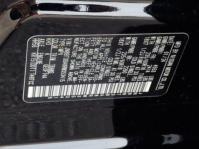 Below is all the standard equipment 4-Wheel Disc Brakes, 5.676 Axle Ratio, 6 Speakers, ABS brakes, Air Conditioning, Alloy wheels, AM/FM radio: SiriusXM, Auto High-beam Headlights, Automatic temperature control, Black Splash Guards (Set of 4), Brake assist, Bumpers: body-color, Chrome Rear Bumper Protector, Cloth Seat Trim w/Patterned Inserts, Delay-off headlights, Driver door bin, Driver vanity mirror, Dual front impact airbags, Dual front side impact airbags, Electronic Stability Control, Emergency communication system: NissanConnect Services, First Aid Kit, Floor Mats w/1-Piece Cargo Area Protector, Four wheel independent suspension, Frameless Rearview Mirror w/Universal Remote, Front anti-roll bar, Front Bucket Seats, Front Center Armrest, Front dual zone A/C, Front reading lights, Fully automatic headlights, Heated door mirrors, Illuminated entry, Illuminated Kick Plates, Knee airbag, Low tire pressure warning, NissanConnect featuring Apple CarPlay and Android Auto, Occupant sensing airbag, Outside temperature display, Overhead airbag, Overhead console, Panic alarm, Passenger door bin, Passenger vanity mirror, Power door mirrors, Power driver seat, Power Liftgate, Power steering, Power windows, Radio data system, Radio: AM/FM NissanConnect, Rear anti-roll bar, Rear Parking Sensors, Rear seat center armrest, Rear side impact airbag, Rear window defroster, Rear window wiper, Remote keyless entry, Speed control, Speed-Sensitive Wipers, Split folding rear seat, Spoiler, Steering wheel mounted audio controls, Tachometer, Telescoping steering wheel, Tilt steering wheel, Traction control, Trip computer, Variably intermittent wipers, and Wheels: 18 Dark Painted Machine Finished Alloy.