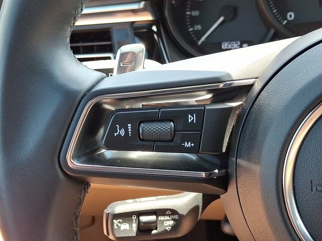Below is all the standard equipment 4-Wheel Disc Brakes, 4.67 Axle Ratio, 8 Speakers, ABS brakes, Air Conditioning, Alloy wheels, AM/FM radio: SiriusXM, Apple CarPlay, Auto-dimming door mirrors, Auto-dimming Rear-View mirror, Automatic temperature control, Brake assist, Bumpers: body-color, Delay-off headlights, Driver door bin, Driver vanity mirror, Dual front impact airbags, Dual front side impact airbags, Electronic Stability Control, Emergency communication system: Car Connect Services, Exterior Parking Camera Rear, Four wheel independent suspension, Front anti-roll bar, Front Bucket Seats, Front Center Armrest, Front dual zone A/C, Front reading lights, Fully automatic headlights, Garage door transmitter: HomeLink, Heated 8-Way Power Seats, Heated door mirrors, Heated front seats, Illuminated entry, Leather Shift Knob, Leather steering wheel, Low tire pressure warning, Memory seat, Navigation System, Occupant sensing airbag, Outside temperature display, Overhead airbag, Overhead console, Panic alarm, Passenger door bin, Passenger vanity mirror, Porsche Communication Management, Power door mirrors, Power driver seat, Power Liftgate, Power passenger seat, Power steering, Power windows, Radio data system, Rain sensing wipers, Rear air conditioning, Rear anti-roll bar, Rear reading lights, Rear seat center armrest, Rear side impact airbag, Rear window defroster, Rear window wiper, Remote keyless entry, Security system, Speed control, Speed-sensing steering, Split folding rear seat, Spoiler, Sport steering wheel, Standard Seat Trim, Steering wheel mounted audio controls, Tachometer, Telescoping steering wheel, Tilt steering wheel, Traction control, Trip computer, Turn signal indicator mirrors, Variably intermittent wipers, Wheels: 19 Macan, and Wheels: 20 Macan S in Dark Titanium.