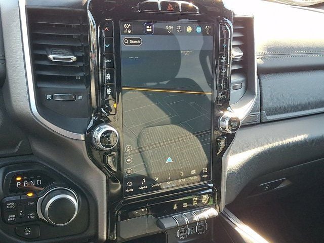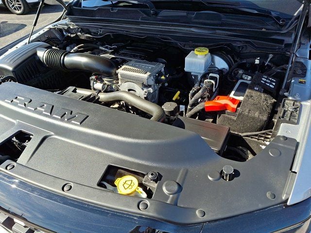 Below is all the standard equipment Bed Utility Group (MOPAR 4 Adjustable Cargo Tie-Down Hooks, MOPAR Deployable Bed Step, MOPAR Spray In Bedliner, and Pick-Up Box Lighting), Big Horn Level B Equipment Group (115V Auxiliary Power Outlet, 2nd Row In Floor Storage Bins, 400W Inverter, 4G LTE Wi-Fi Hot Spot, 9 Amplified Speakers w/Subwoofer, Air Conditioning ATC w/Dual Zone Control, All R1 High Radios, All Radio Equipped Vehicles, Apple CarPlay, Auto-Dimming Exterior Driver Mirror, Auto-Dimming Rear-View Mirror, Black Premium Power Mirrors, Class IV Receiver Hitch, Cluster 7.0 TFT Color Display, Connected Travel & Traffic Services, Connectivity - US/Canada, Convex Wide-Angle Exterior Mirror Insert, Exterior Mirrors Courtesy Lamps, Exterior Mirrors w/Heating Element, Exterior Mirrors w/Supplemental Signals, For Details, Visit DriveUconnect.com, For More Info, Call 800-643-2112, Front Fog Lamps, Global Telematics Box Module (TBM), Glove Box Lamp, Google Android Auto, GPS Navigation, HD Radio, Heated Front Seats, Heated Steering Wheel, Integrated Voice Command w/Bluetooth®, LED Footwell Lighting, Media Hub w/2 Charge Only USBs, ParkSense Front/Rear Park Assist w/Stop, Power 2-Way Driver Lumbar Adjust, Power 8-Way Driver Seat, Power Adjustable Pedals, Power-Folding Mirrors, Radio: Uconnect 5 Nav w/12.0 Display, Rear Dome w/On/Off Switch Lamp, Rear Power Sliding Window, Rear Window Defroster, Remote Start System, Security Alarm, SiriusXM Radio Service, SiriusXM Satellite Radio, SiriusXM w/360L, Sun Visors w/Illuminated Vanity Mirrors, Universal Garage Door Opener, and USB Host Flip), Night Edition (3 Rear Seat Head Restraints, 4 Way Front Headrests, Accent Color Door Handles, Accent Color Premium Power Mirrors, Anti-Spin Differential Rear Axle, Black Exterior Truck Badging, Black Headlamp Bezels, Black Interior Accents, Black Painted Exterior Mirrors Caps, Body Color Front Bumper, Body Color Rear Bumper w/Step Pads, Bucket Seats, Deluxe Cloth Bucket Seats, Dual Exhaust w/Black Tips, Front Seat Back Map Pockets, Full Length Floor Console, Grille Surround 1 Black Texture 2 Black, Manual Adjust 4-Way Front Passenger Seat, RAM Grille Badge - Black, Rear 60/40 Folding Seat, Rear Center Armrest, and Wheels: 20 x 9.0 Premium Paint/Polished), Quick Order Package 27Z Big Horn (Big Horn Badge), Technology Group (Digital Rearview Mirror, Heads-Up Display, and LED CHMSL Lamp), 3.21 Rear Axle Ratio, 4-Wheel Disc Brakes, 48V Belt Starter Generator, 6 Speakers, ABS brakes, Air Conditioning, Alloy wheels, AM/FM radio, Blind Spot & Cross Path Detection, Brake assist, Bumpers: chrome, Cloth Bench Seat, Compass, Delay-off headlights, Driver door bin, Dual front impact airbags, Dual front side impact airbags, Electronic Stability Control, Emergency communication system: RAM Connect, Front anti-ro