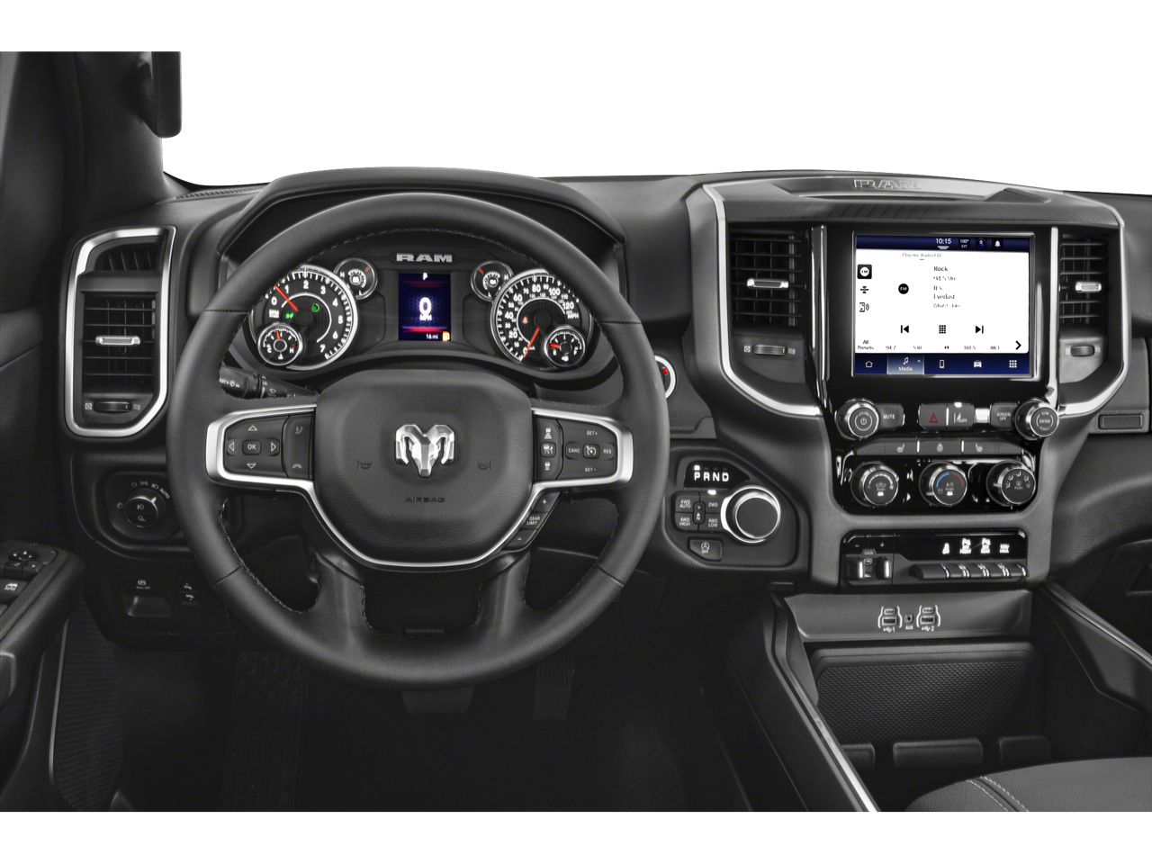 Below is all the standard equipment Big Horn Level 2 Equipment Group (115V Auxiliary Power Outlet, 115V Auxiliary Rear Power Outlet, 12 Touchscreen Display, 2nd Row In Floor Storage Bins, 400W Inverter, 4G LTE Wi-Fi Hot Spot, 9 Amplified Speakers w/Subwoofer, Air Conditioning ATC w/Dual Zone Control, Apple CarPlay, Auto Power-Folding Mirrors, Auto-Dimming Exterior Driver Mirror, Auto-Dimming Rear-View Mirror, Black Exterior Mirrors, Black Premium Power Mirrors, Cluster 7.0 TFT Color Display, Configurable Drive Mode, Connected Travel & Traffic Services, Connectivity - US/Canada, Convex Wide-Angle Exterior Mirror Insert, Exterior Mirrors Courtesy Lamps, Exterior Mirrors w/Heating Element, Exterior Mirrors w/Supplemental Signals, Glove Box Lamp, Google Android Auto, GPS Antenna Input, GPS Navigation, HD Radio, Heated Front Seats, Heated Steering Wheel, Integrated Voice Command w/Bluetooth®, Leather Wrapped Steering Wheel, LED Dome Lamp w/On/Off Switch, LED Footwell Lighting, Media Hub w/2 Charge Only USBs, Overhead LED Lamps, Power 2-Way Driver Lumbar Adjust, Power Adjust 8-Way Driver Seat, Power Adjustable Pedals, Premium Overhead Console, Radio: Uconnect 5 Nav w/12.0 Display, Rear Power Sliding Window, Rear Window Defroster, Remote Tailgate Release, Security Alarm, SiriusXM w/360L, Steering Wheel Mounted Audio Controls, Sun Visors w/Illuminated Vanity Mirrors, Universal Garage Door Opener, and USB Host Flip), Night Edition (3 Rear Seat Head Restraints, 4 Way Front Headrests, Accent Color Door Handles, Accent Color Premium Power Mirrors, Accent Color Tailgate Handle, Anti-Spin Differential Rear Axle, Black Exterior Truck Badging, Black Headlamp Bezels, Black Interior Accents, Black Painted Exterior Mirrors Caps, Black Tail Lamp Bezels, Body Color Front Bumper, Body Color Rear Bumper w/Step Pads, Bucket Seats, Deluxe Cloth Bucket Seats, Front Seat Back Map Pockets, Full Length Floor Console, Grille Black Surround Black Mesh, Manual Adjust 4-Way Front Passenger Seat, RAM Grille Badge - Black, Rear 60/40 Folding Seat, Rear Center Armrest, and Wheels: 20 x 9.0 Aluminum Painted Clad), Quick Order Package 21Z Big Horn, Trailer Brake Control, 3.55 Rear Axle Ratio, 4-Wheel Disc Brakes, 6 Speakers, ABS brakes, Air Conditioning, Alloy wheels, AM/FM radio, Apple CarPlay/Android Auto, Auto High-beam Headlights, Brake assist, Bumpers: chrome, Cloth Bench Seat, Compass, Delay-off headlights, Driver door bin, Dual front impact airbags, Dual front side impact airbags, Electronic Stability Control, Front anti-roll bar, Front Center Armrest w/Storage, Front fog lights, Front reading lights, Front wheel independent suspension, Fully automatic headlights, Heated door mirrors, Illuminated entry, Low tire pressure warning, Manual Folding Exterior Mirrors, Occupant sensing airbag, Outside temperature display, Overhead airbag, Overhead co