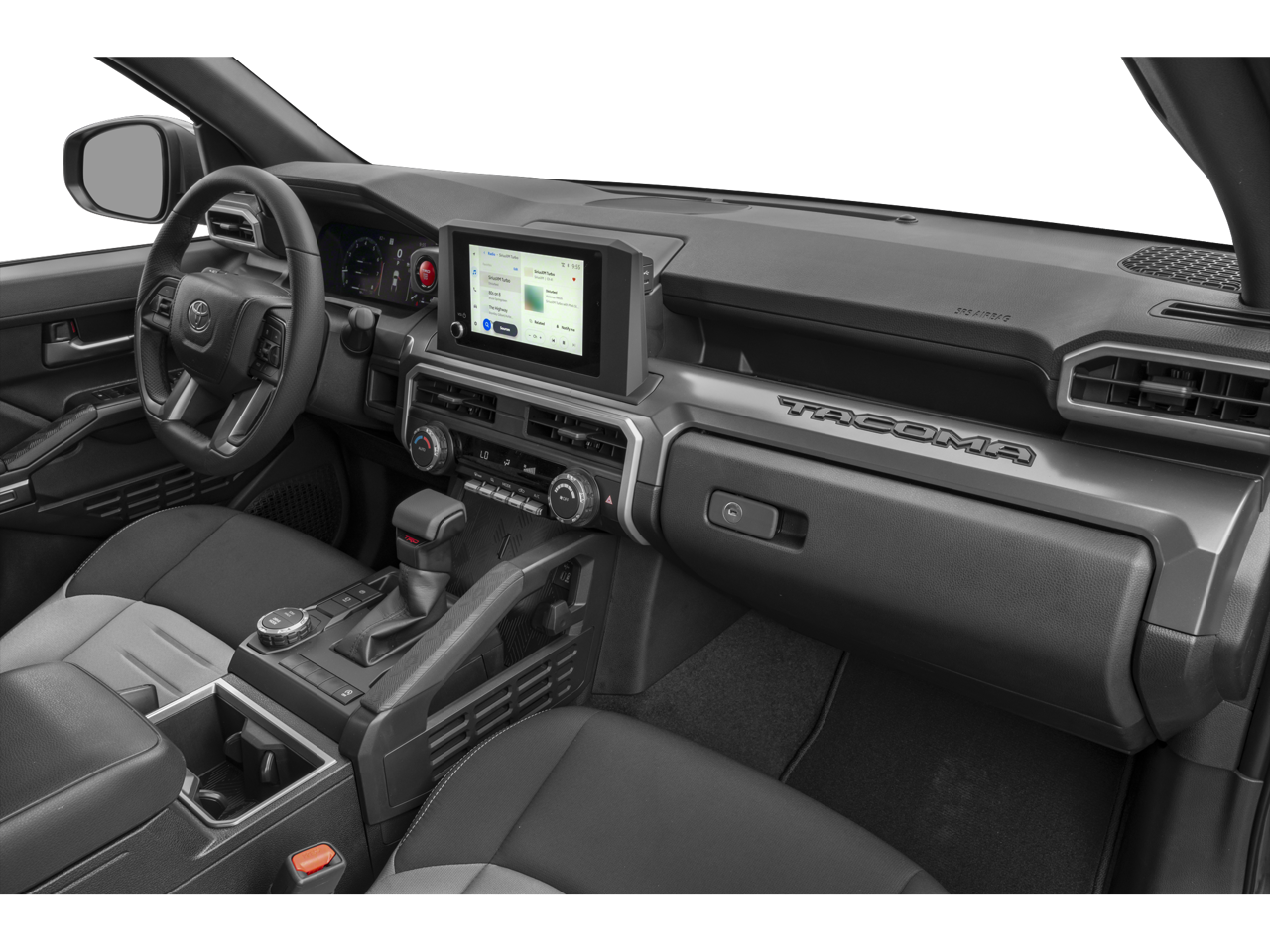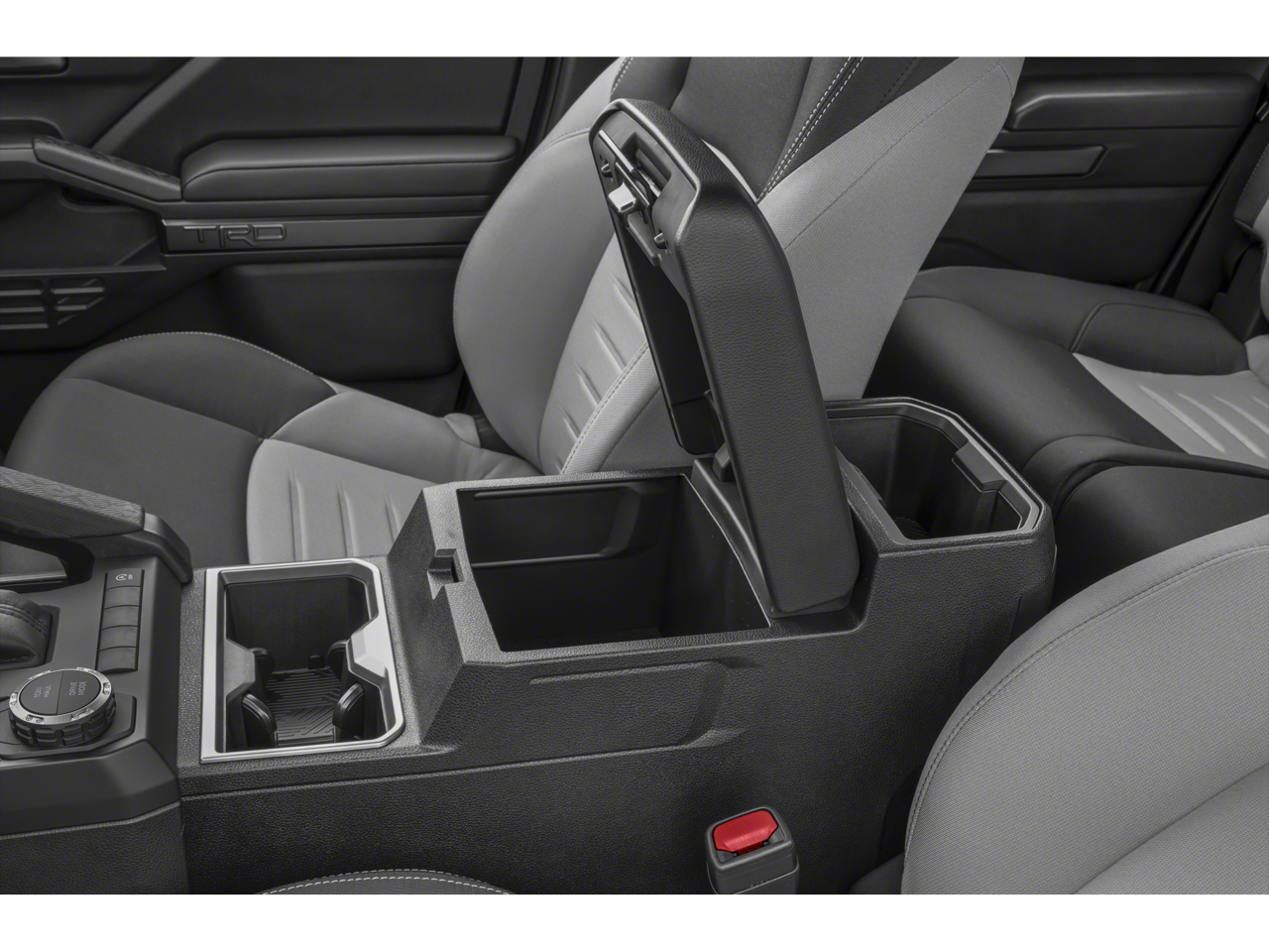 Below is all the standard equipment 4WD, 3.583 Axle Ratio, 4-Wheel Disc Brakes, 6 Speakers, ABS brakes, Air Conditioning, Alloy wheels, AM/FM radio: SiriusXM, Anti-whiplash front head restraints, Apple CarPlay/Android Auto, Auto High-beam Headlights, Auto-dimming Rear-View mirror, Automatic temperature control, Brake assist, Bumpers: body-color, Driver door bin, Driver vanity mirror, Dual front impact airbags, Dual front side impact airbags, Electronic Stability Control, Emergency communication system: Safety Connect (1-year trial), Exterior Parking Camera Rear, Fabric Seat Trim, Four wheel independent suspension, Front anti-roll bar, Front Bucket Seats, Front Center Armrest, Front fog lights, Front reading lights, Fully automatic headlights, Heated door mirrors, Illuminated entry, Knee airbag, Leather Shift Knob, Leather steering wheel, Low tire pressure warning, Occupant sensing airbag, Outside temperature display, Overhead airbag, Overhead console, Panic alarm, Passenger door bin, Passenger vanity mirror, Power door mirrors, Power steering, Power windows, Radio: 8 Toyota Audio Multimedia, Rear step bumper, Rear window defroster, Remote keyless entry, Security system, Speed control, Speed-sensing steering, Split folding rear seat, Steering wheel mounted audio controls, Tachometer, Telescoping steering wheel, Tilt steering wheel, Traction control, Trip computer, Turn signal indicator mirrors, Variably intermittent wipers, and Wheels: 18 TRD Sport Alloy.
